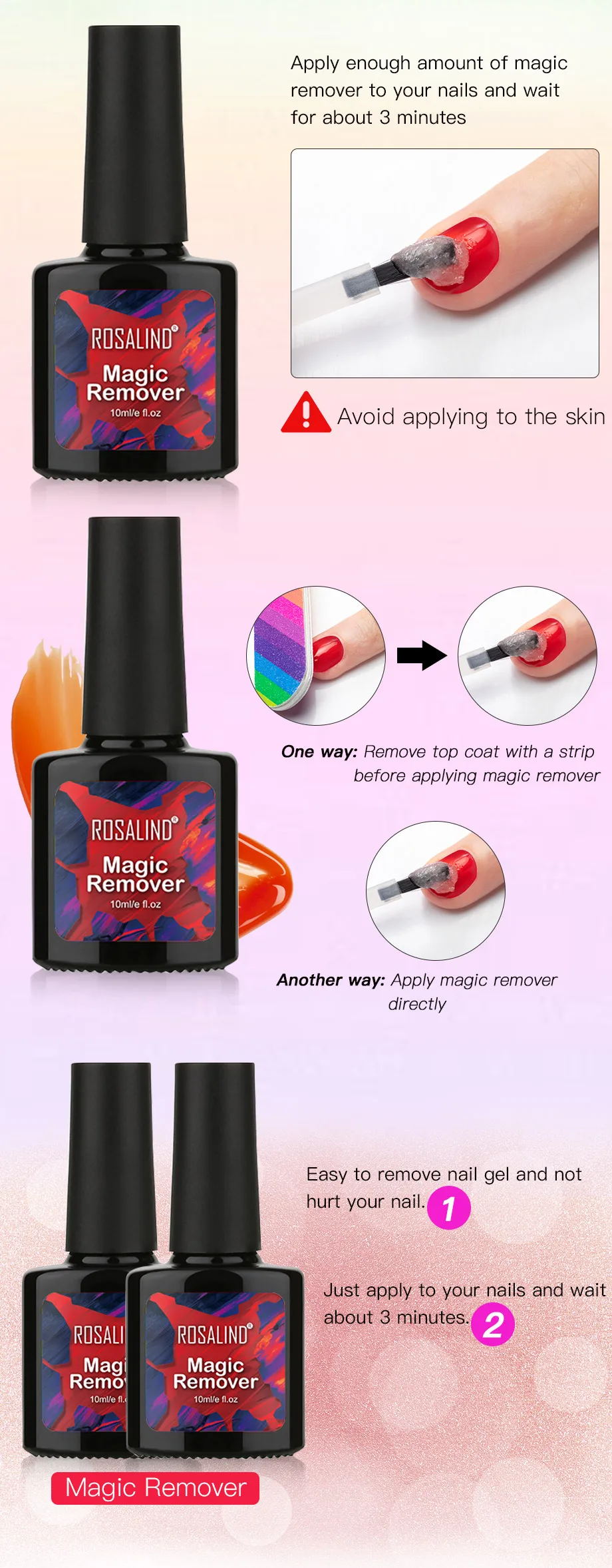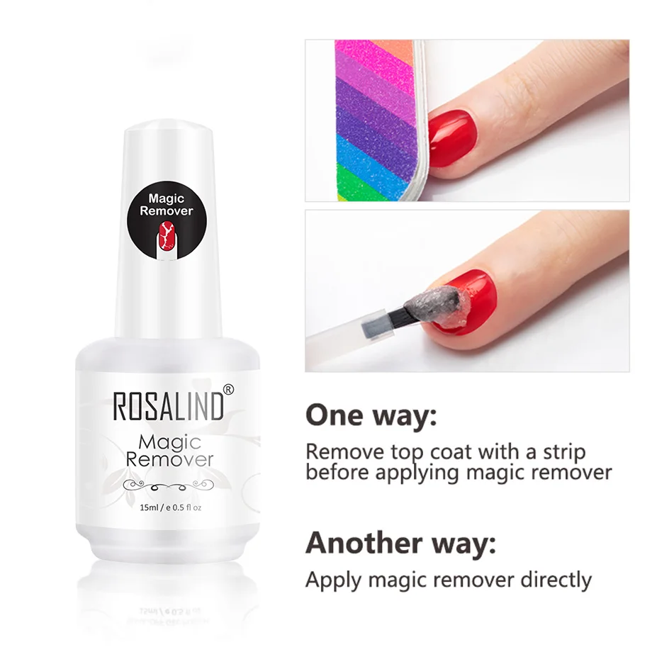 Профессиональное магическое средство для быстрого удаления лака ROSALIND для поверхности ногтей, липкое средство для удаления матовой грунтовки и базового верхнего покрытия, эмалированная мономер, жидкость