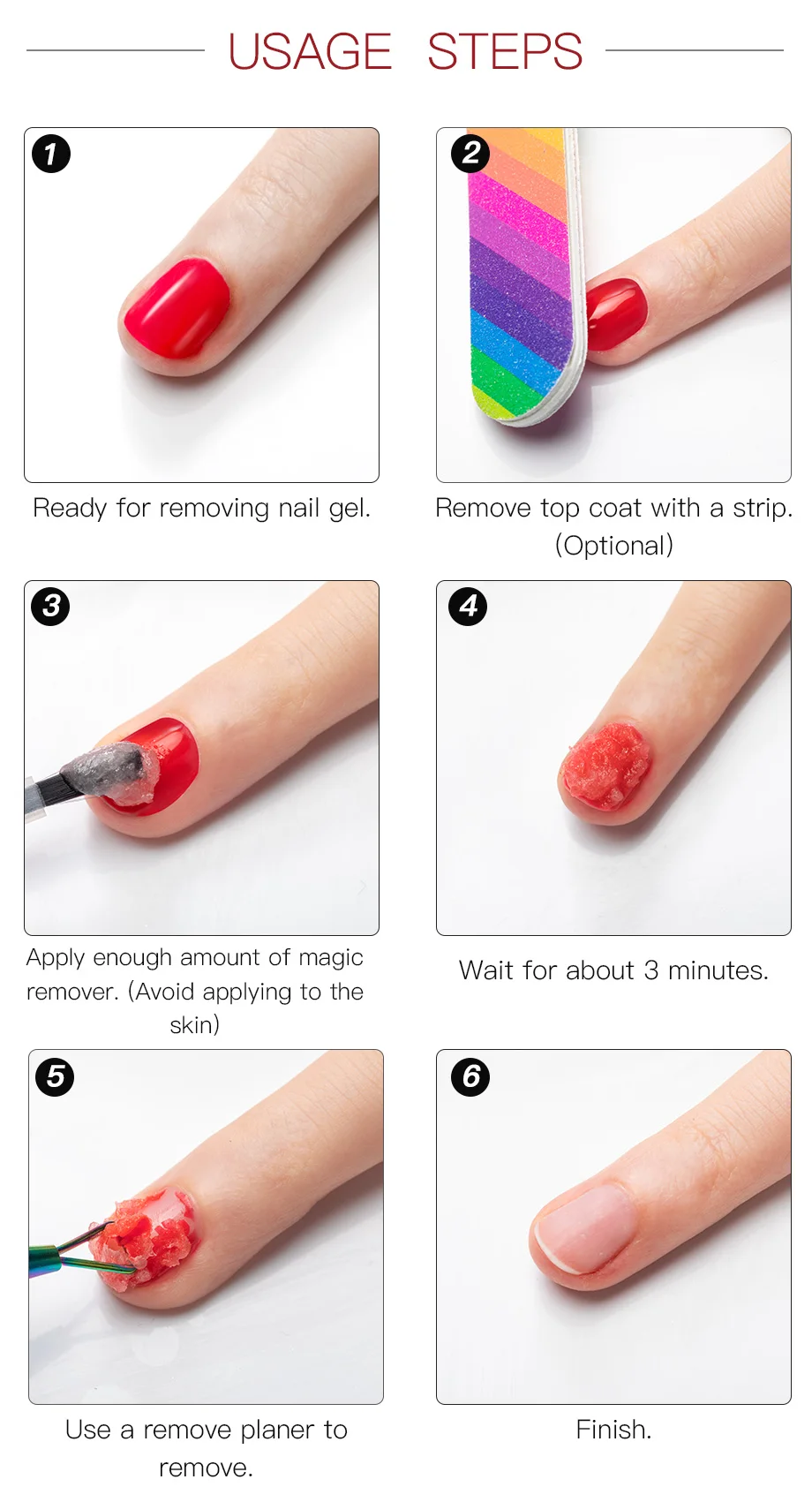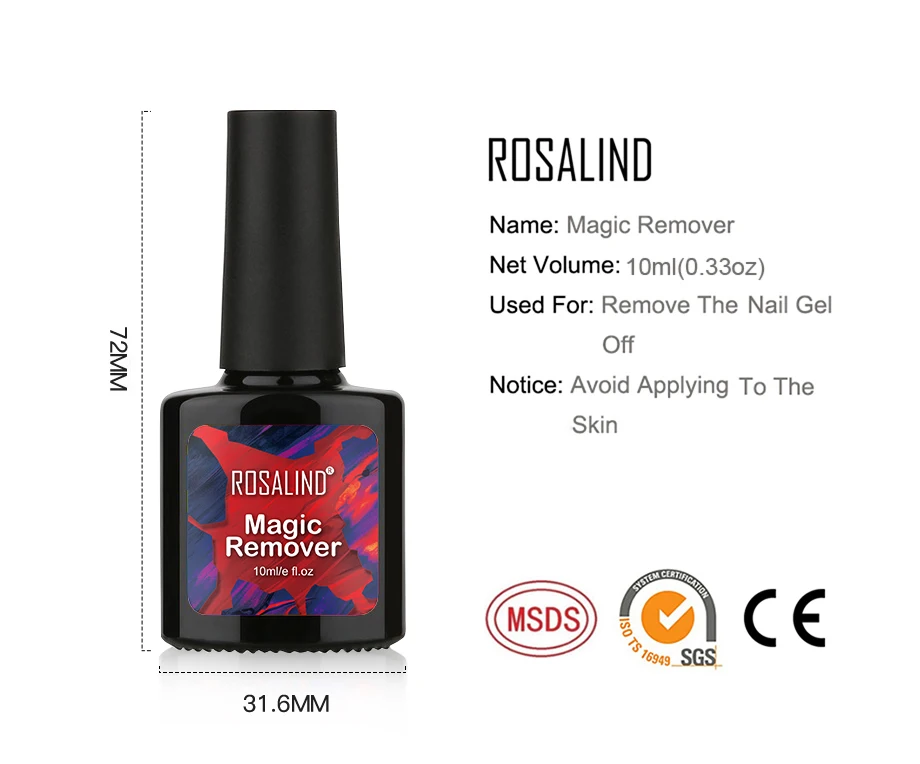 Маникюрный гвоздь для удаленияХарактеристики Товара:Название бренда: ROSALINDНаименование: средство для удаления магииОбъем нетто: 10 мл/15 млИспользуется для: Удалите гель для ногтейПримечание: избегайте нанесения на кожуМы уверены, что наш гель для удаления магии имеет лучшее качество на Aliexpress.-Качество-наш первый приоритет.-Мы используем только органическую текстуру для защиты вашего здоровья.-Легко удаляет гель для ногтей и не повреждает ногти.Шаг за шагом:1. Снимите верхнее пальто в полоску. (Опционально)2. Нанесите достаточное количество волшебного средства на ногти3. Подождите около 3 минут. (Избегайте нанесения на кожу)4. Для удаления геля для ногтей используйте кнопку для удаления.5. Отделка.Внимание:1. Будьте осторожны, не наносите средство для удаления магии на кожу.2. Объем составляет 15 мл. Поскольку емкость бутылки составляет более 15 мл, средство для удаления магии не будет полностью заполнено бутылкой!3. Плотно закрываются. Держите подальше от солнечного света. Хранить в недоступном для детей месте.