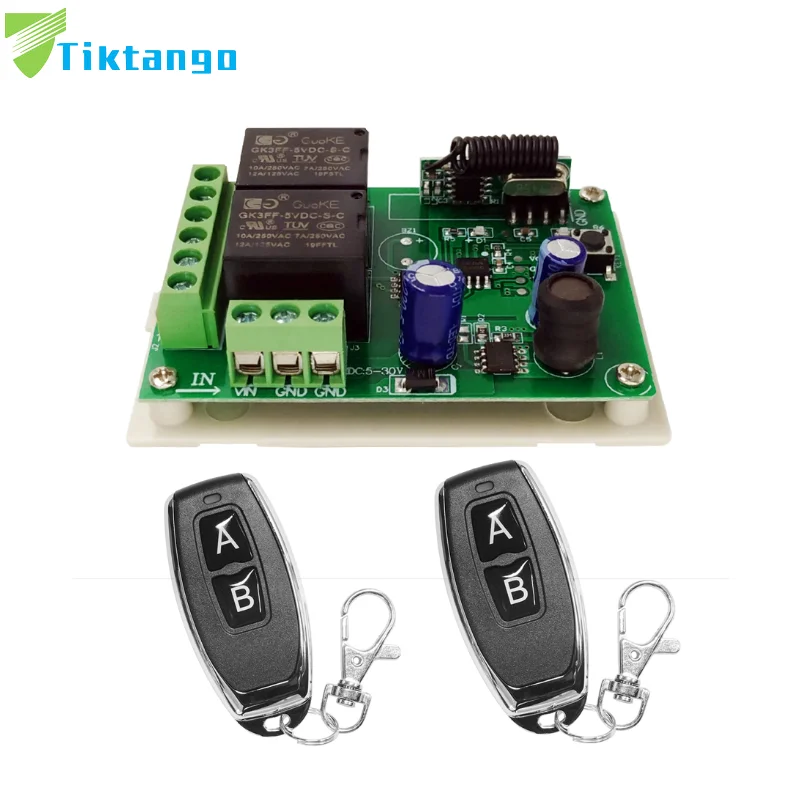 Tiktango DC 5-30V 2CH переключатель с пультом дистанционного управления релейный модуль универсальный 24V 2 задержка 433MHz Дистанционное управление переключатель релейный приемник