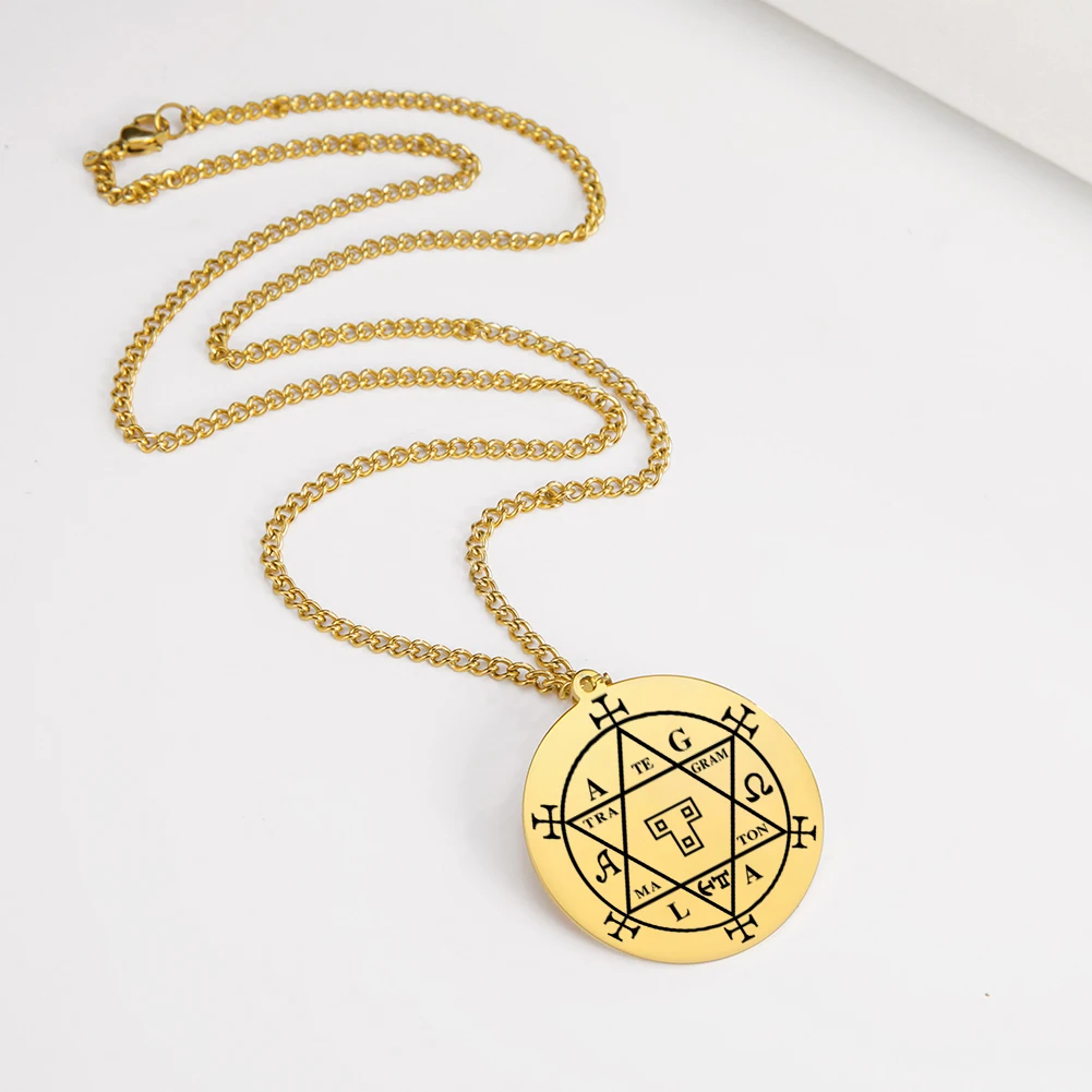 TypeThe Wheel of Fortune AGLA Solomon Hexagram Amulet Pendant Necklace