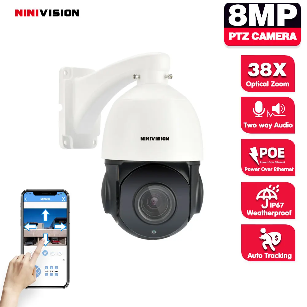 NINIVISION 4K 8MP PTZ IP Камера HD 38X зум оптический зум Автоматическое отслеживание двухстороннее аудио IP Камера открытый Водонепроницаемый ИК видеонаблюдения PTZ камеры SD Card слот p2p