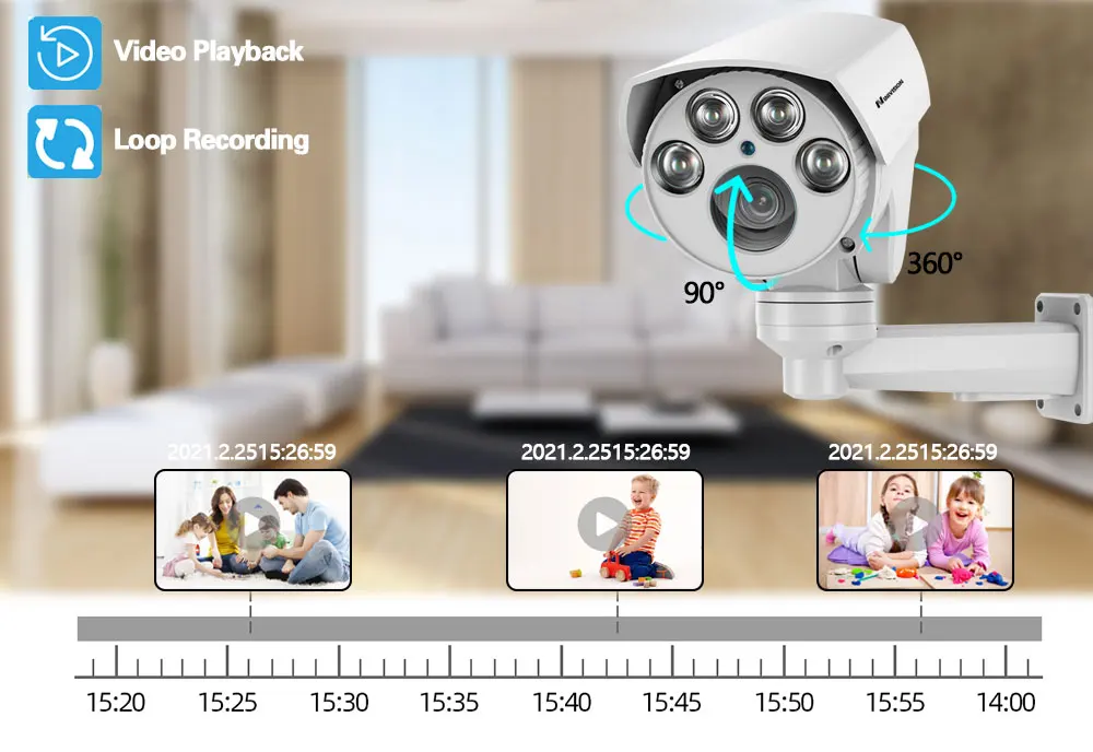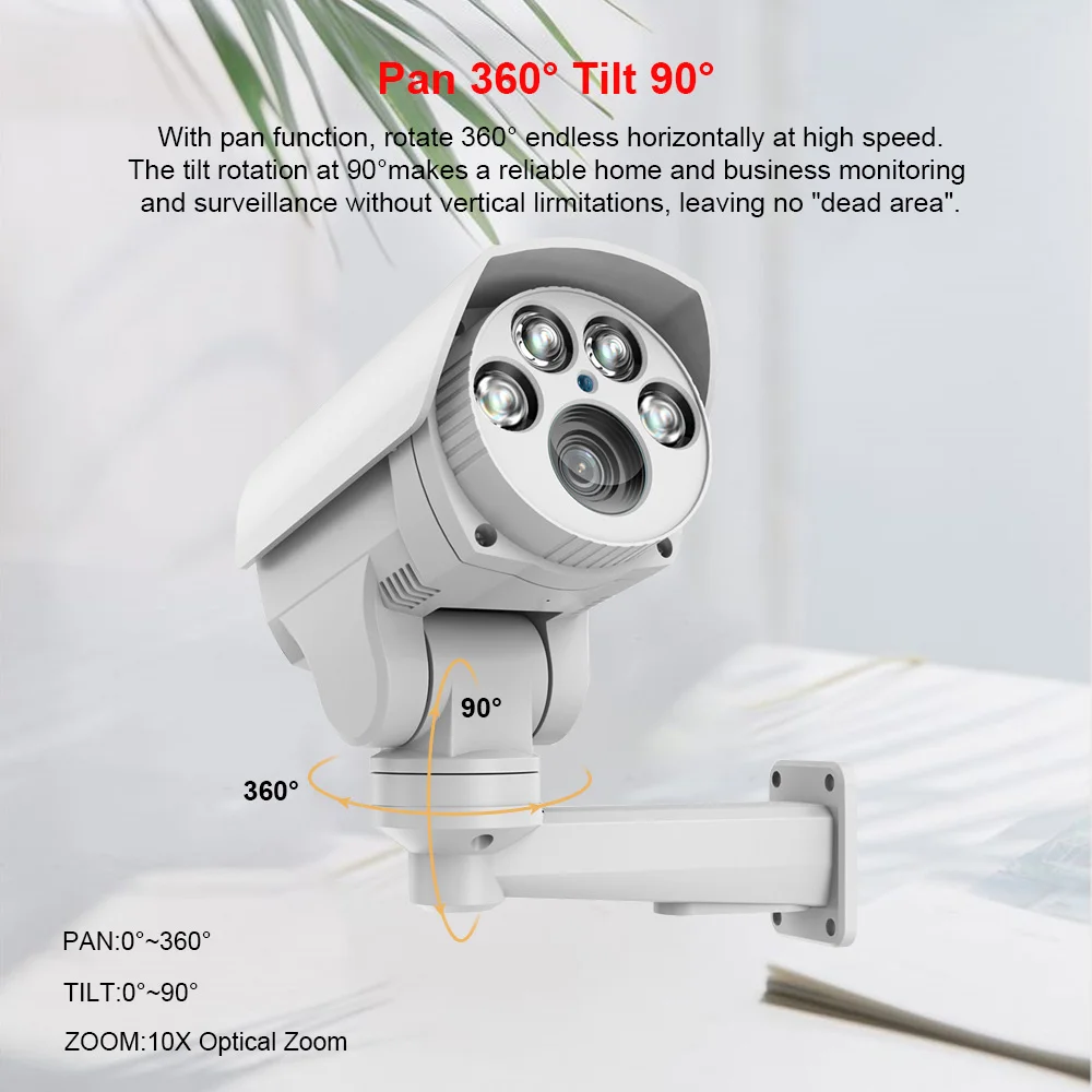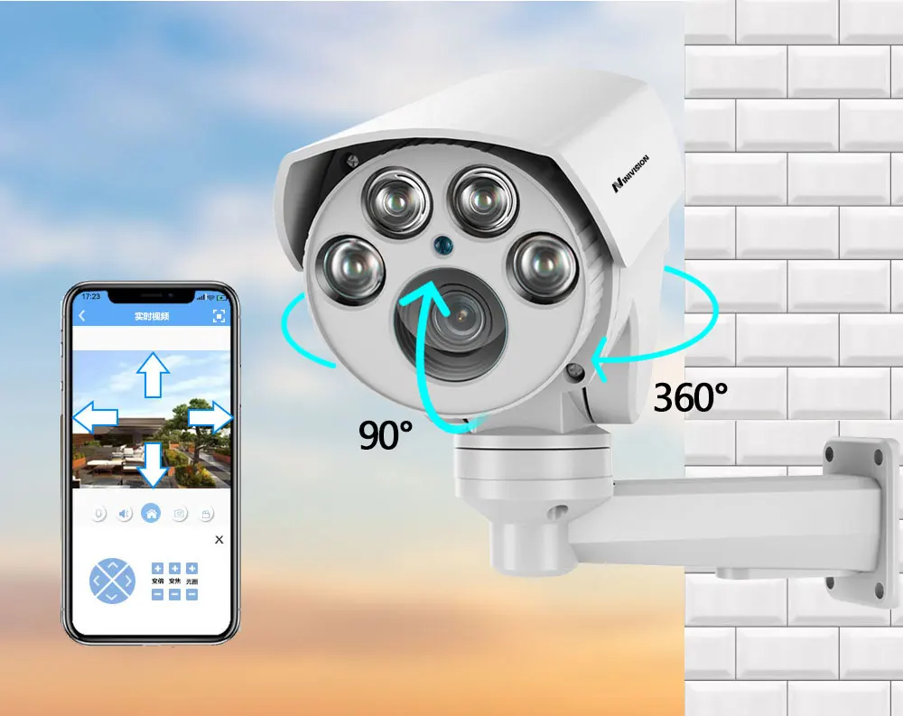 Горизонтальное вращение 360 °, вертикальное 90 °, управление углом поворота через приложение. Поддержка действий парка, пресетов/узоров/патрулей/панорамирования может вызвать автоматически после определенного времени бездействия
