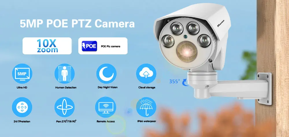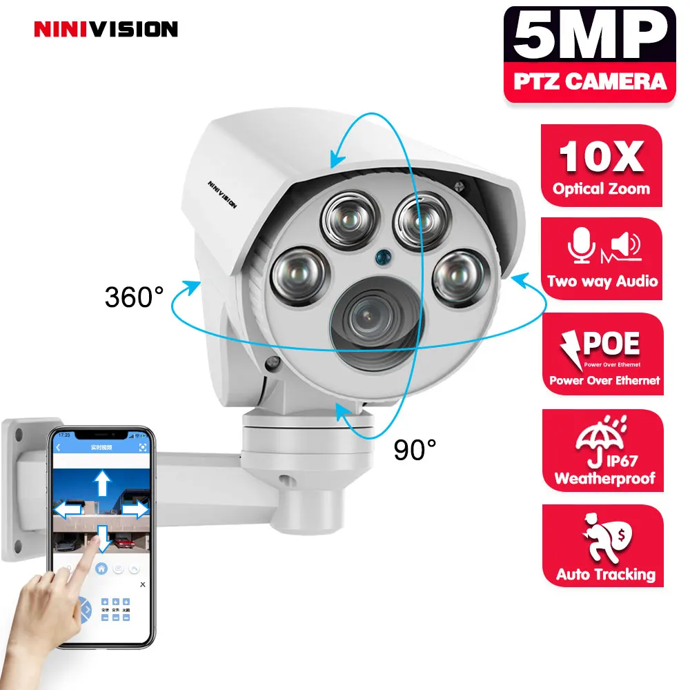 NINIVISION CCTV IP камера наблюдения на открытом воздухе 5MP Водонепроницаемая POE PTZ пуля камера видеонаблюдения Система IP POE 10X Zoom камера
