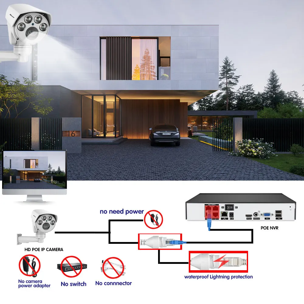POE camera max support150-200M расстояние передачи кабелей POE, что значительно увеличивает удобство домашней установки.