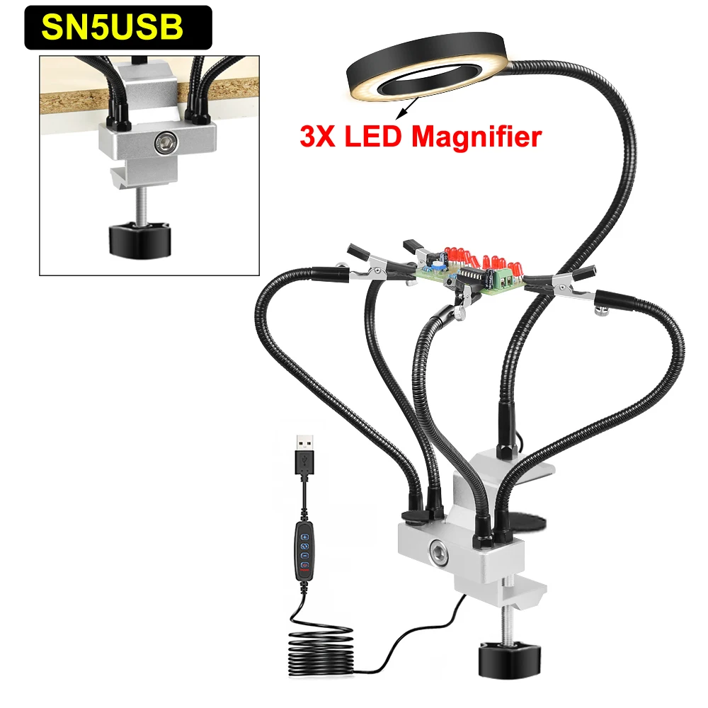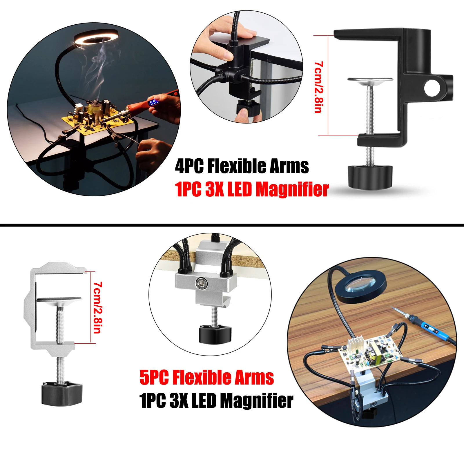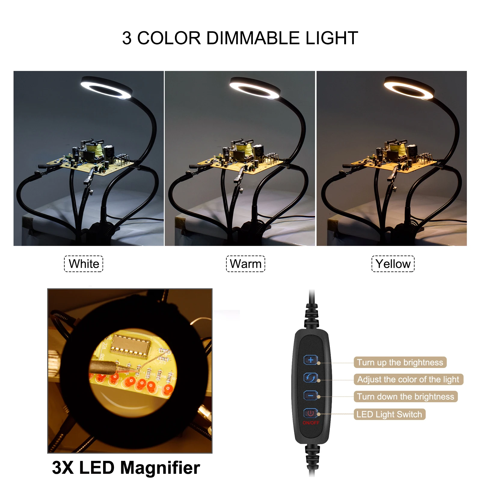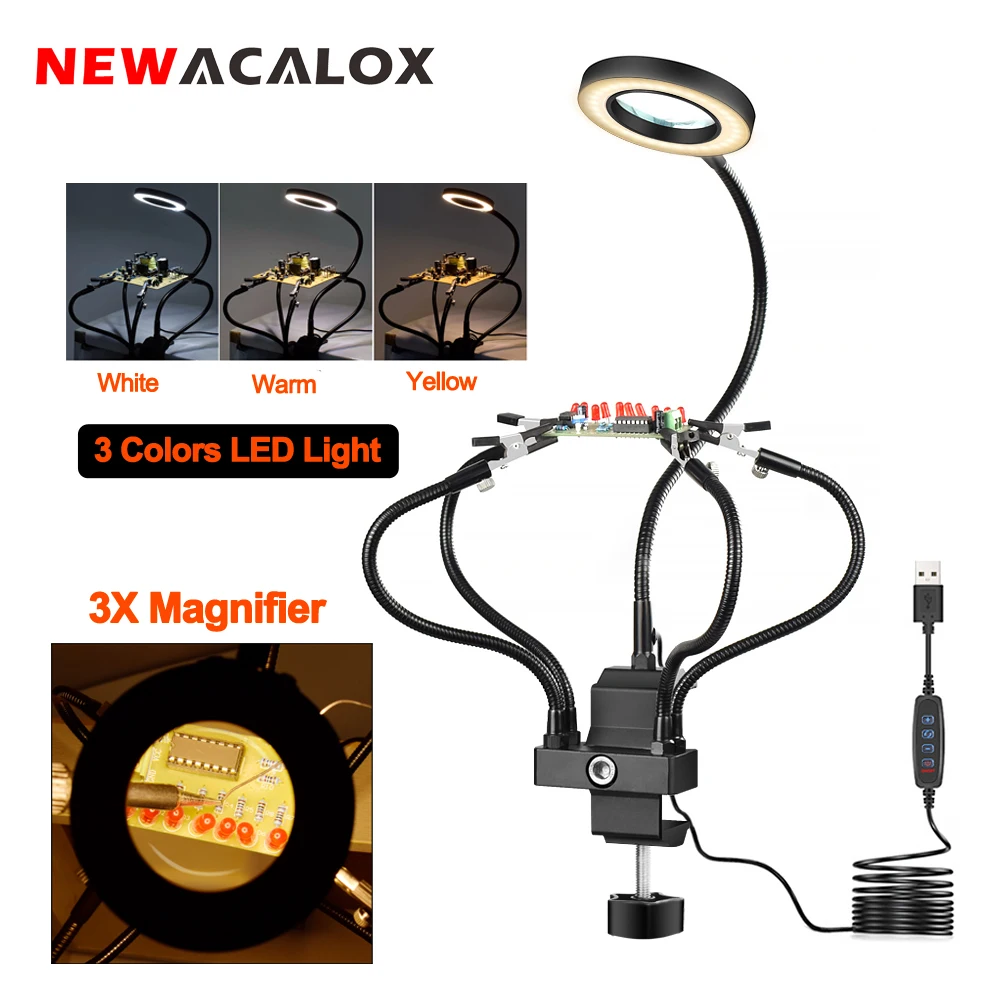 Универсальные фиксированные зажимы NEWACALOX для печатной платы, сварочные стрелки для пайки, третья рука, инструмент с 3X светодиодным увеличительным стеклом, лампа для ремонта