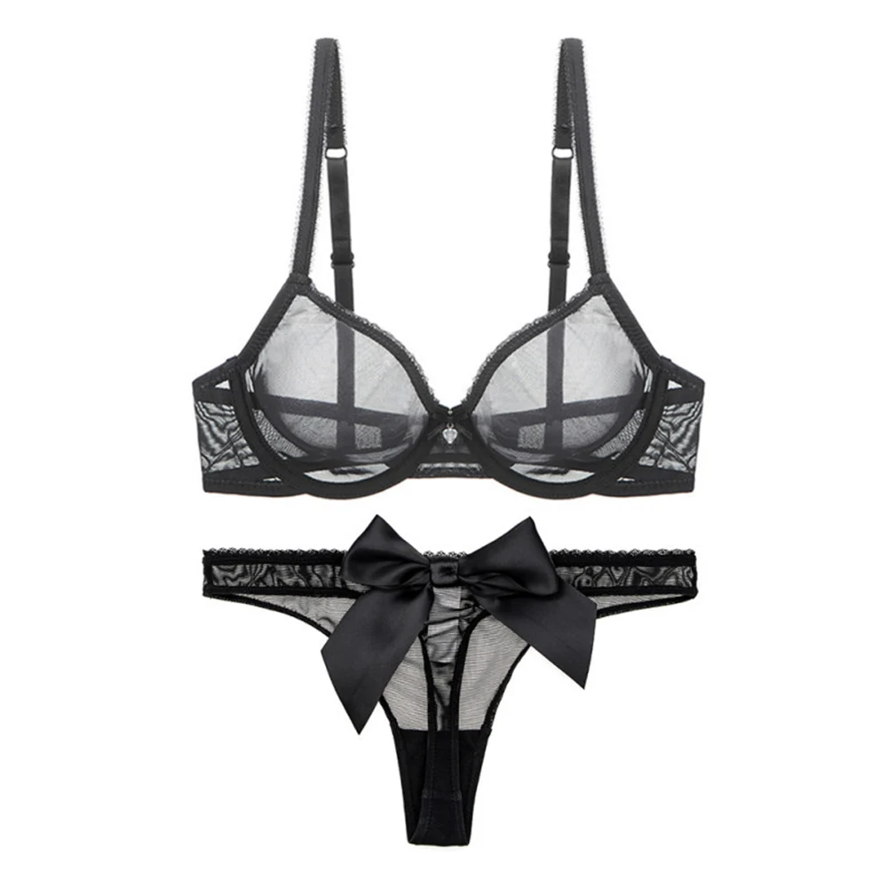 Лидер продаж, ультратонкий Однотонный женский комплект с бюстгальтером, сексуальное кружевное нижнее белье с бантом, Тонги, размера плюс, женское нижнее белье