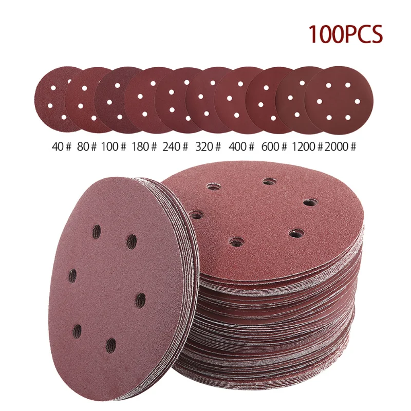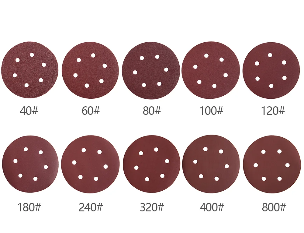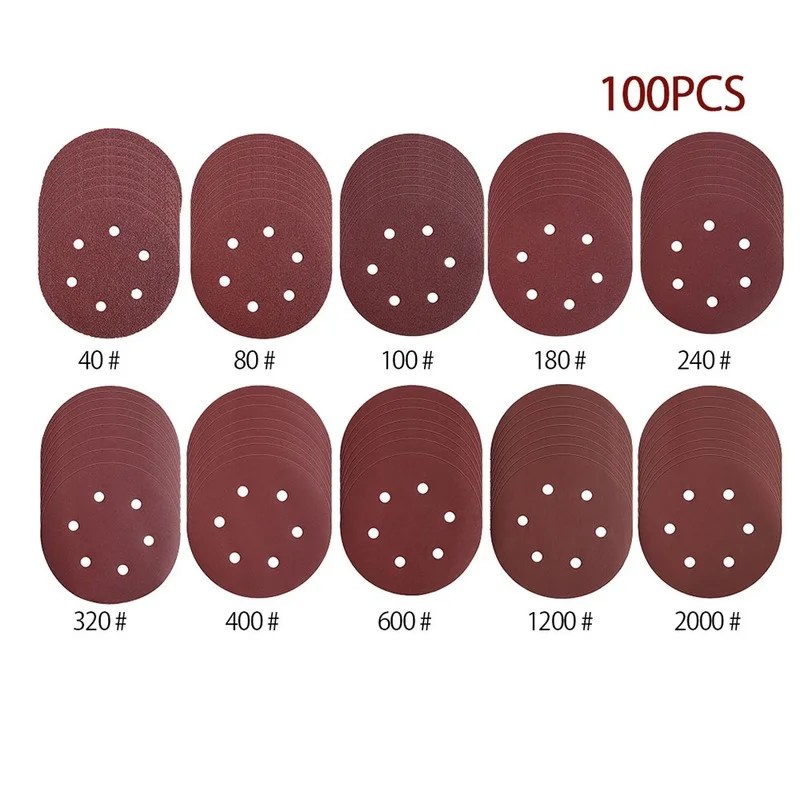 Наждачная бумага 100 шт., 150 мм, 6 дюймов, диск с 6 отверстиями, листы песка, Зернистость 40-800, шлифовальный диск с крючком и петлей, аксессуары для шлифовальной бумаги