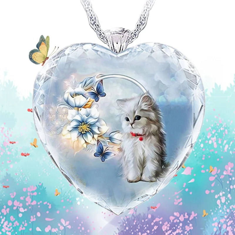 Милое ожерелье в форме сердца со стеклянной подвеской в виде кошки ...