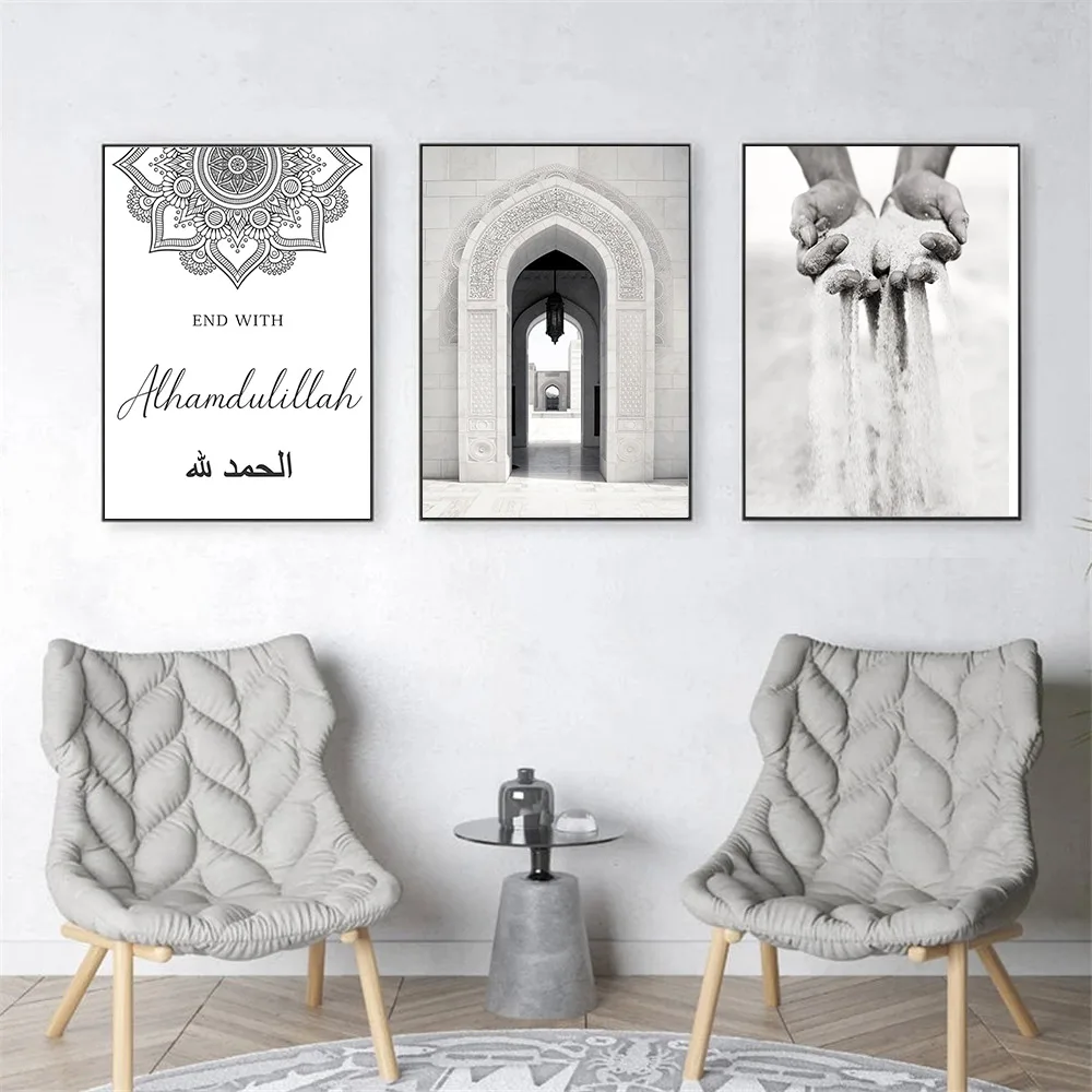 Марокканская мечеть дверь Художественная печать цветок песок ручная живопись холст постер Исламская арабская каллиграфия Настенная картина домашний декор