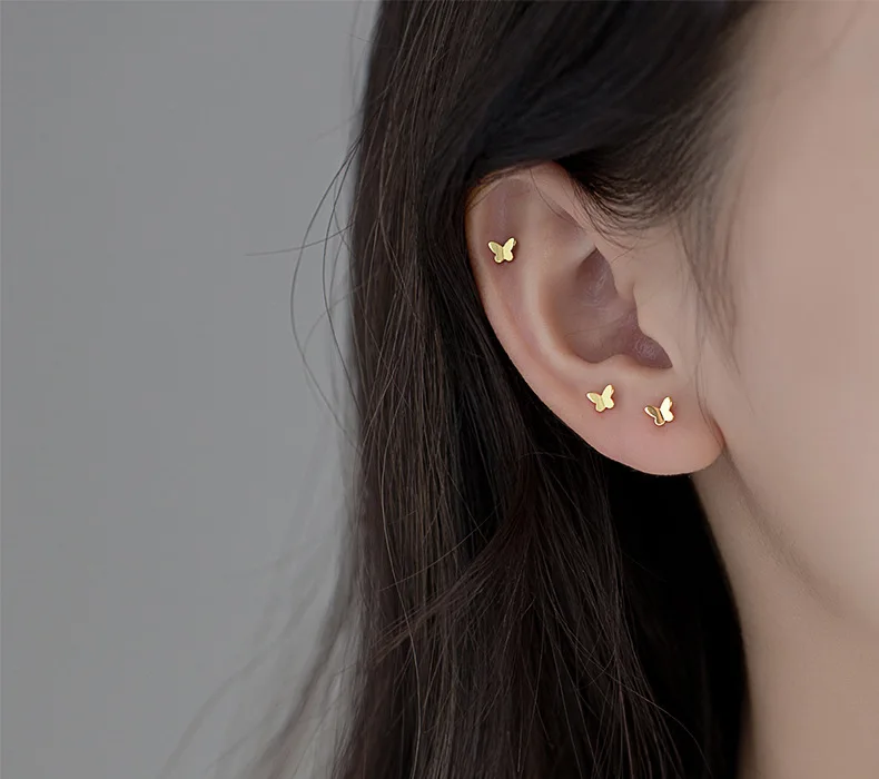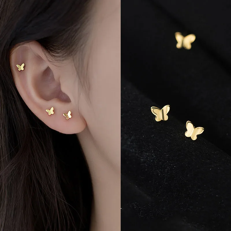 Новые милые маленькие серьги-гвоздики для пирсинга для девушек женщин Золотая Бабочка Мини Насекомые Животные ювелирные изделия