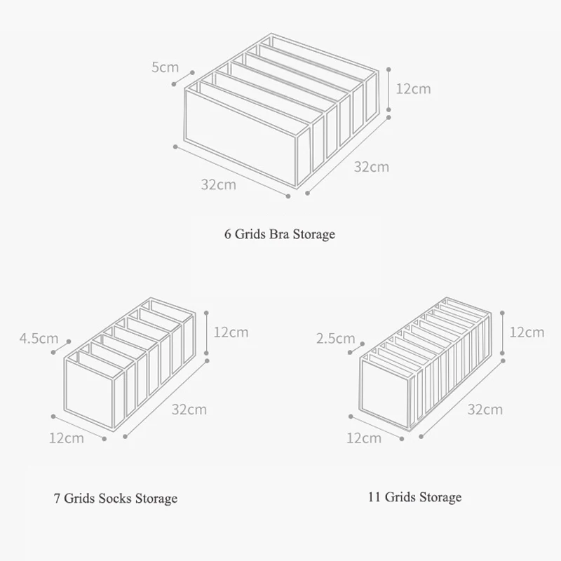 Описание товараНазвание: ящик для храненияМатериал: нейлонРазмер: 32*32*12 (6 ячеек) ; 32*12*12 (7 ячеек/11 ячеек)Цвет: белый, серый, черный, бежевыйОсобенности1. Высококачественный нейлоновый ящик для хранения бюстгальтера, носков, нижнего белья2. Несколько отсеков по желанию, простое использование с увеличенной высотой3. Для ящика и шкафа-органайзера, высокая загрузкаУпаковка включенаЯщик для хранения * 1