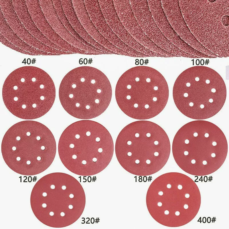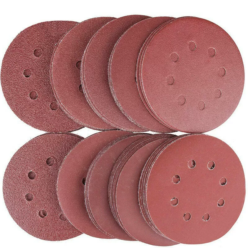 6080100 шт. 5 дюймов 125 мм круглые наждачные бумаги, наждачные листы, Зернистость 40-400, шлифовальный диск с крючком и петлей, полировочные абразивные инструменты
