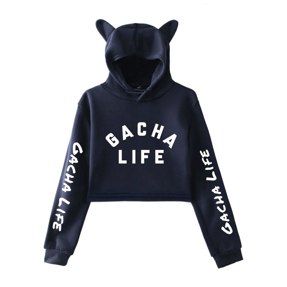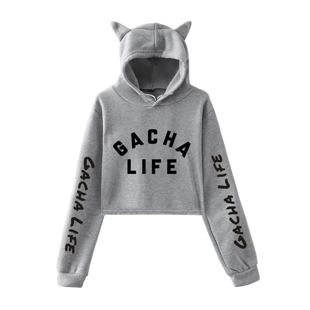 Горячая игра Gacha жизнь укороченный худи с кошачьими ушами Кофты д...