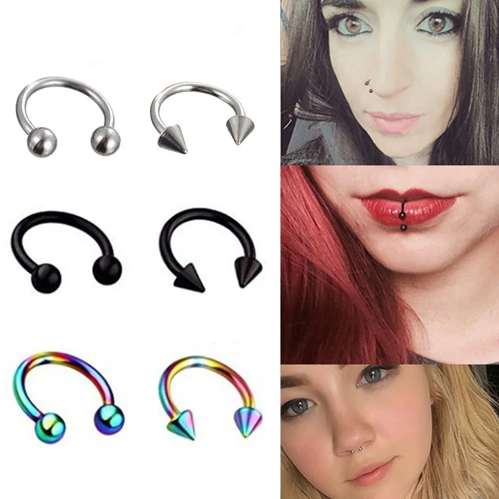 Конический шип, круглая Подкова из хирургической стали Перегородка кольцо в нос, обручи для сосков, носа, перегородки, бровей, Пирсинга Ушей, украшения для тела, 2 шт.