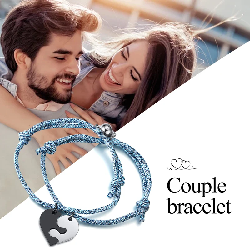 Набор из 2 магнитных браслетов для пар, браслет в форме сердца, из ...