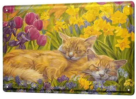 Bernice жестяной знак Кот сон на открытом воздухе металлическая пластина 8X12