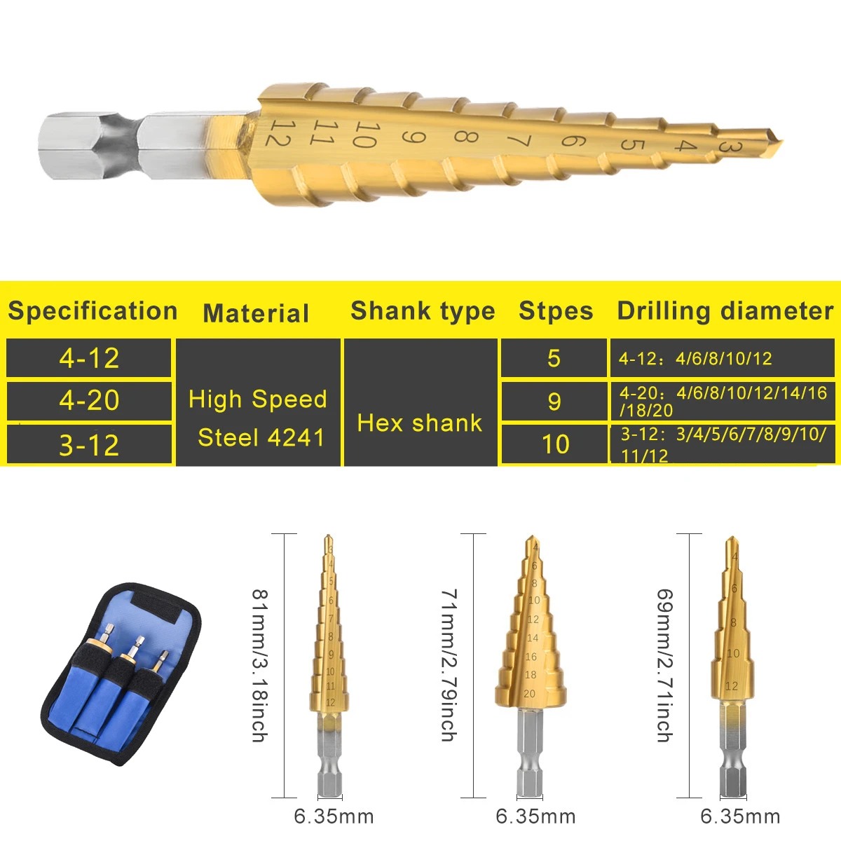 Набор ступенчатых Сверл из быстрорежущей стали, 3 шт., с титановым ...