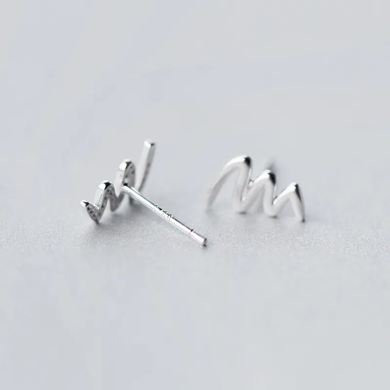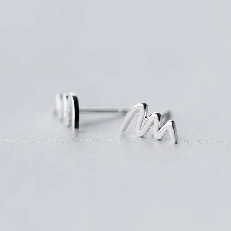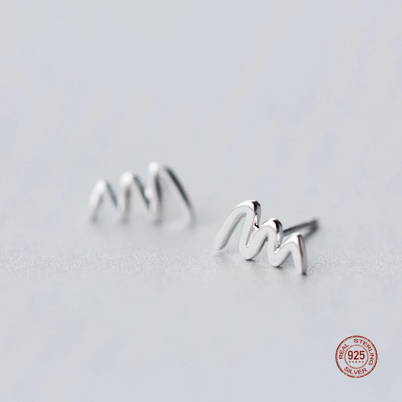 LKO настоящее серебро 925 пробы 100% простая волна сердцебиение серьги-гвоздики для женщин ежедневные океанская волна серьги-гвоздики для девочки ювелирные изделия подарок