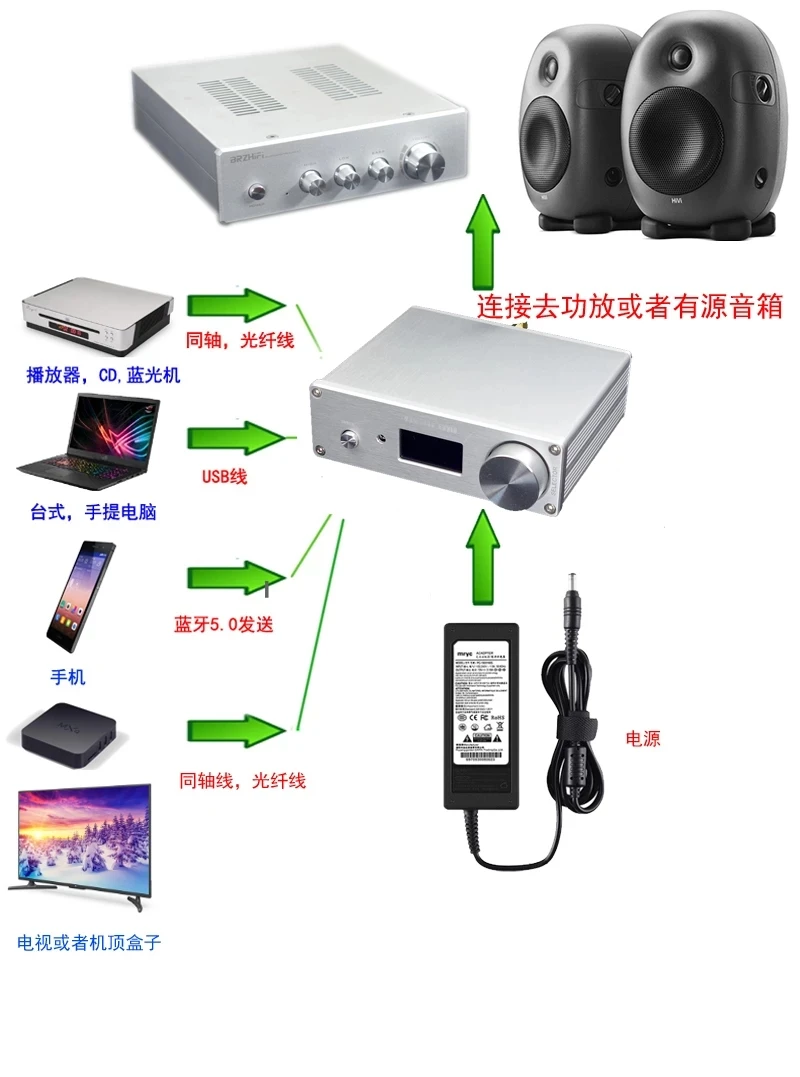 Обратите внимание, что в этом продукте используются две чипы ES9038Q2M, которые отличаются от общих чипов ES9038Q2M. Эффективность анализа, плотность и разделение будут значительно улучшены. Конечно, стоимость также дороже. Bluetooth также была обновлена до последней версии Bluetooth QCC5125 Qualcomm, с точностью лучше, чем CSR8675, поддержка APTX-HD! + LDACМногие декодеры ES9038 на рынке не созрели в дизайне. Даже с XMOS или итальянским цифровым декодированием, декодирование DSD по-прежнему невозможно. Вы должны спросить продавца перед покупкой. Наши продукты могут непосредственно декодировать DSD64-DSD512!Если вам нужен пароль для подключения к Bluetooth, введите 0123 Описание аксессуаров для машины: 1 адаптер 12V2A, 1 пульт дистанционного управления, 1 USB (только для версии USB)Технические характеристики машины: 130*42*108 без клеммной ручкиСсылка на Драйв: https://amanero.com/drivers.htmРуководство пользователя: ссылка: https://pan.baidu.com/s/1qYC_I1ta5UWAkeVieTN99QКод извлечения: awuq "Руководство по установке драйвера и установке подножек"Ссылка: https://pan.baidu.com/s/1uUn-AAqjN9kWxfEEx-_zzwКод извлечения: 2333ЦАП подходит для дома и автомобиляОсновные характеристики продукта:Chuang использует более новое поколение чипов Bluetooth 5,0 0CC5125, чем CSR8675, и поддерживает адаптивный DAC + APTX- HD + aptx2 Поддержка 192K 24BIT и DSD аудио формат. Совместим с Bluetooth 4,0-5,0 входом.3 Поддержка коаксиального, оптического, USB, Bluetooth входа4 OLED низкомощный дисплей высокой четкости, поддержка дистанционного управления5 детали и разрешение двухъядерного ES9038Q2M значительно улучшены, чем одноchip ES9038Q2M109X163X62mСпецификация:Входной порт:Коаксиальный, оптический, USB, BluetoothАдаптер питания: 12 В постоянного тока (1-2A)Размер печатной платы:109x163x62ммВыходной интерфейс:RCA выходной порт X1 3,5 стерео разъем для наушников XIОсновные характеристики продукта:На улице используется чип Bluetooth 5,0 0CC5125, более новое поколение, чем CSR8675, и поддерживает LDAC + APTX HD + aptx-адаптивный2 Поддержка 192K 24BIT и DSD аудио формат. Совместим с Bluetooth 4,0-5,0 входом.3 Поддержка коаксиального, оптического, USB, Bluetooth входа4 OLED низкомощный дисплей высокой четкости, поддержка дистанционного управления5 детали и разрешение двухъядерного ES9038Q2M значительно улучшены, чем одноchip ES9038Q2MСпецификация:132 мм * 42 мм * 109 мВходной порт:Коаксиальный, оптический, USB, BluetoothАдаптер питания: 12 В постоянного тока (1-2A)Размер печатной платы:109x163x62ммВыходной интерфейс:RCA выходной порт X1 3,5 стерео разъем для наушников XI