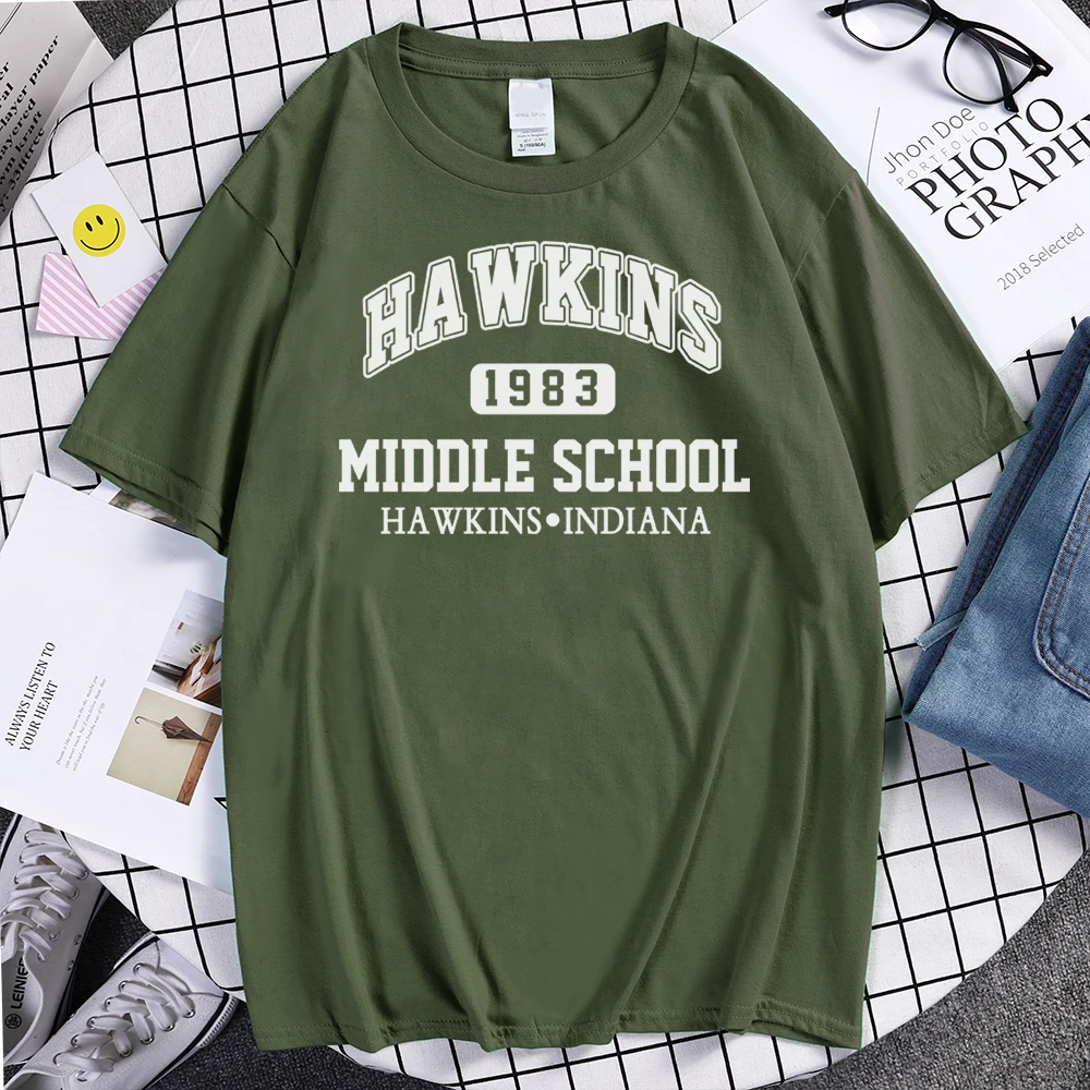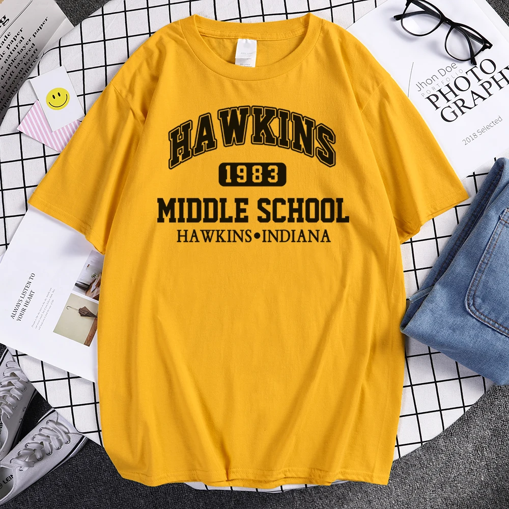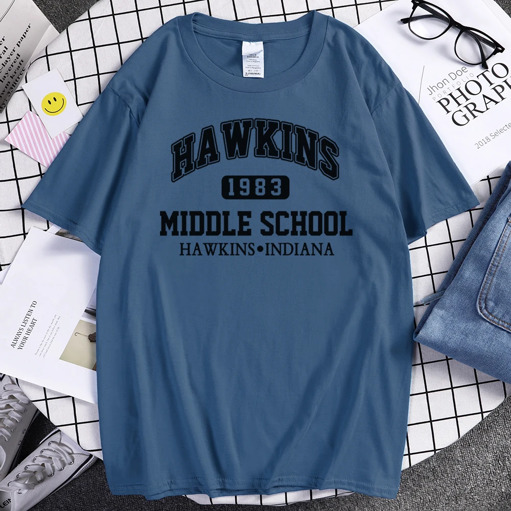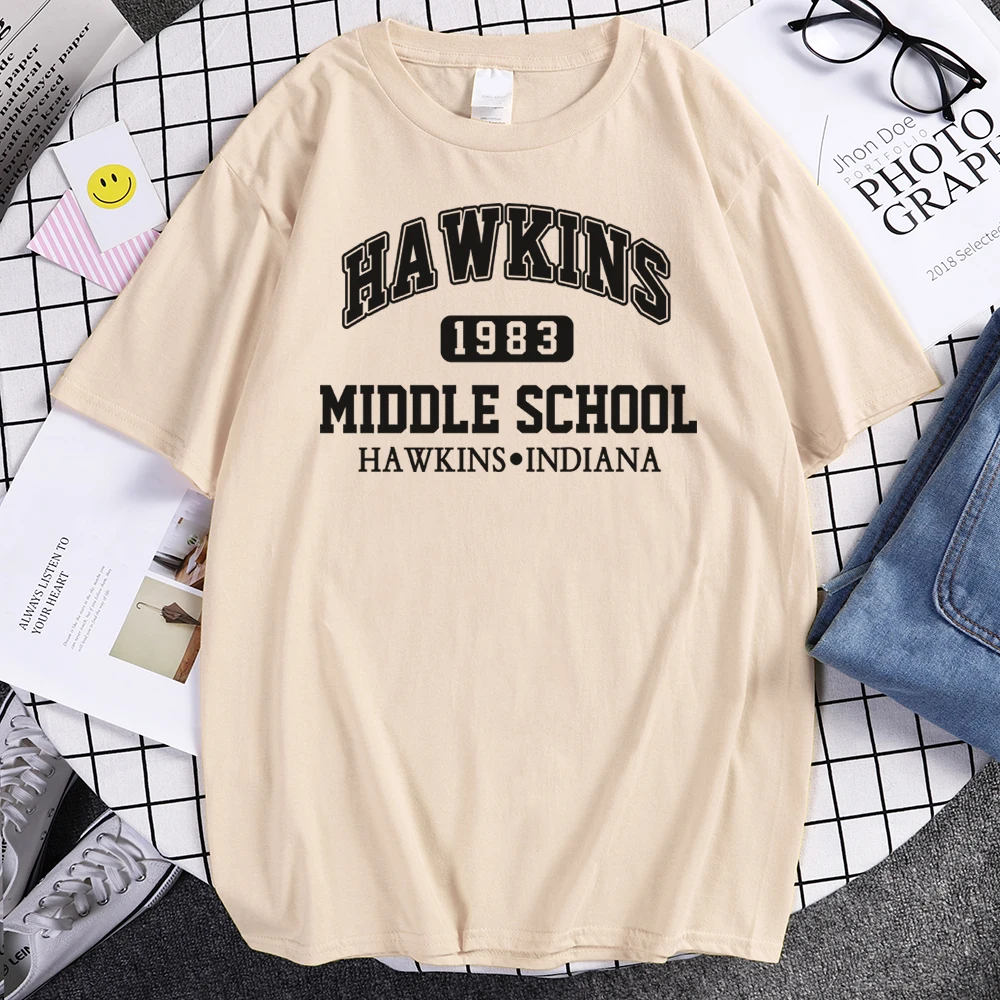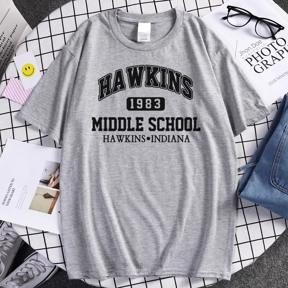 Средняя школа 1983 буквы Напечатанная футболка с круглым вырезом свободные футболки объемный мягкий мужская футболка в винтажном стиле; Сезон лето футболки человек