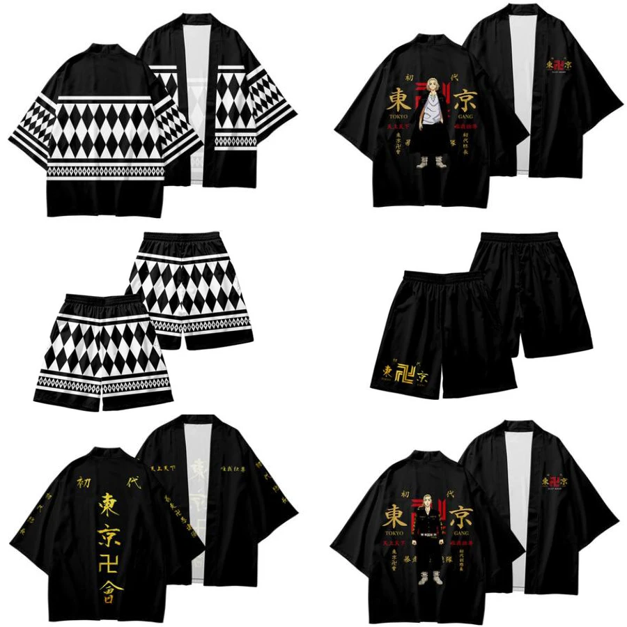 Японское кимоно для косплея манга Токио, модная Повседневная рубашка с коротким рукавом для женщин и мужчин, хаори юката, летняя уличная одежда