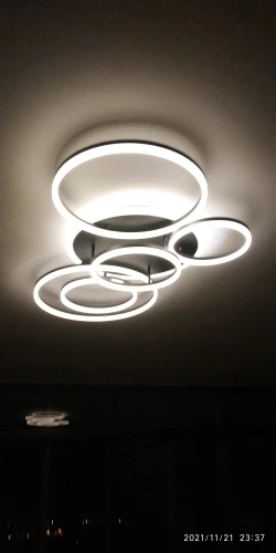 Люстра оч крутая. Стильная, современная. С пультом: можно регулировать как температуру света, так и степень освещенности. есть также ночной режим (сильно приглушённый свет). По квадратуре освещенности идёт четко по характеристикам, указанным у продавца. Собрали легко, благодаря тому, что у продавца есть видео, как это делать. Все подключилось отлично. В подарок положили светильничек USB.