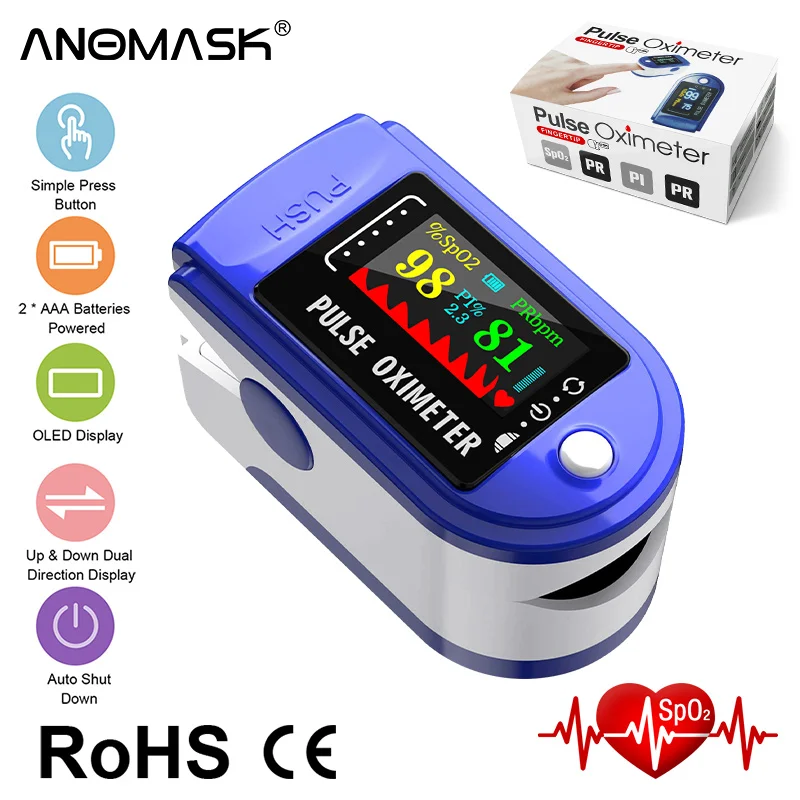 Пульсоксиметр Пальчиковый портативный, прибор для измерения пульса и уровня кислорода в крови, с OLED-экраном, забота о здоровье