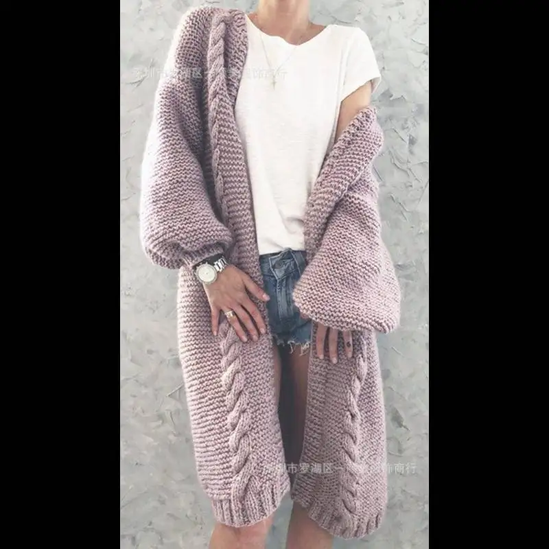 Женский длинный вязаный свитер, Свободный теплый кардиган с длинным рукавом, зима 555