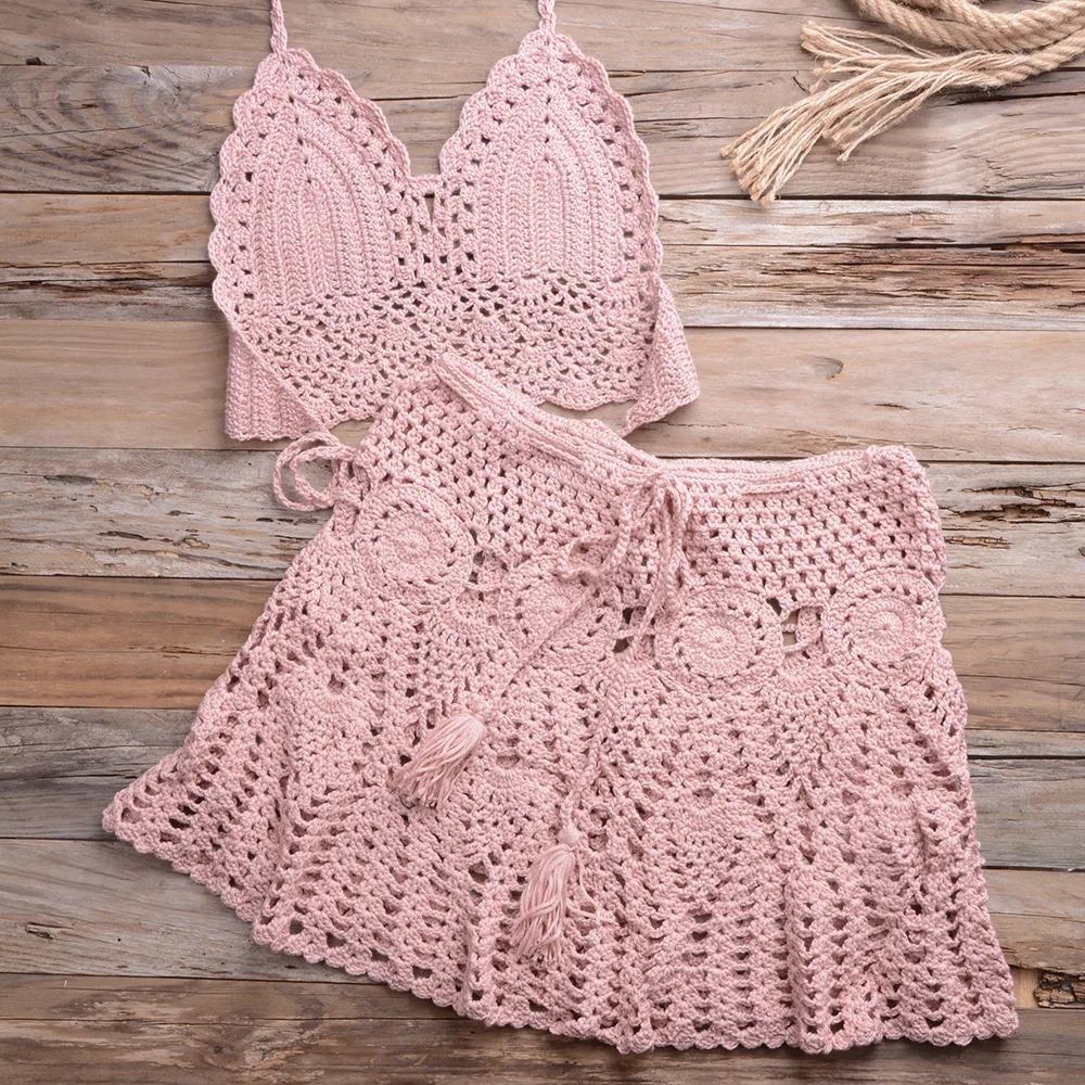 Женский вязаный крючком купальник, 2 шт.компл., Пляжная накидка, се...