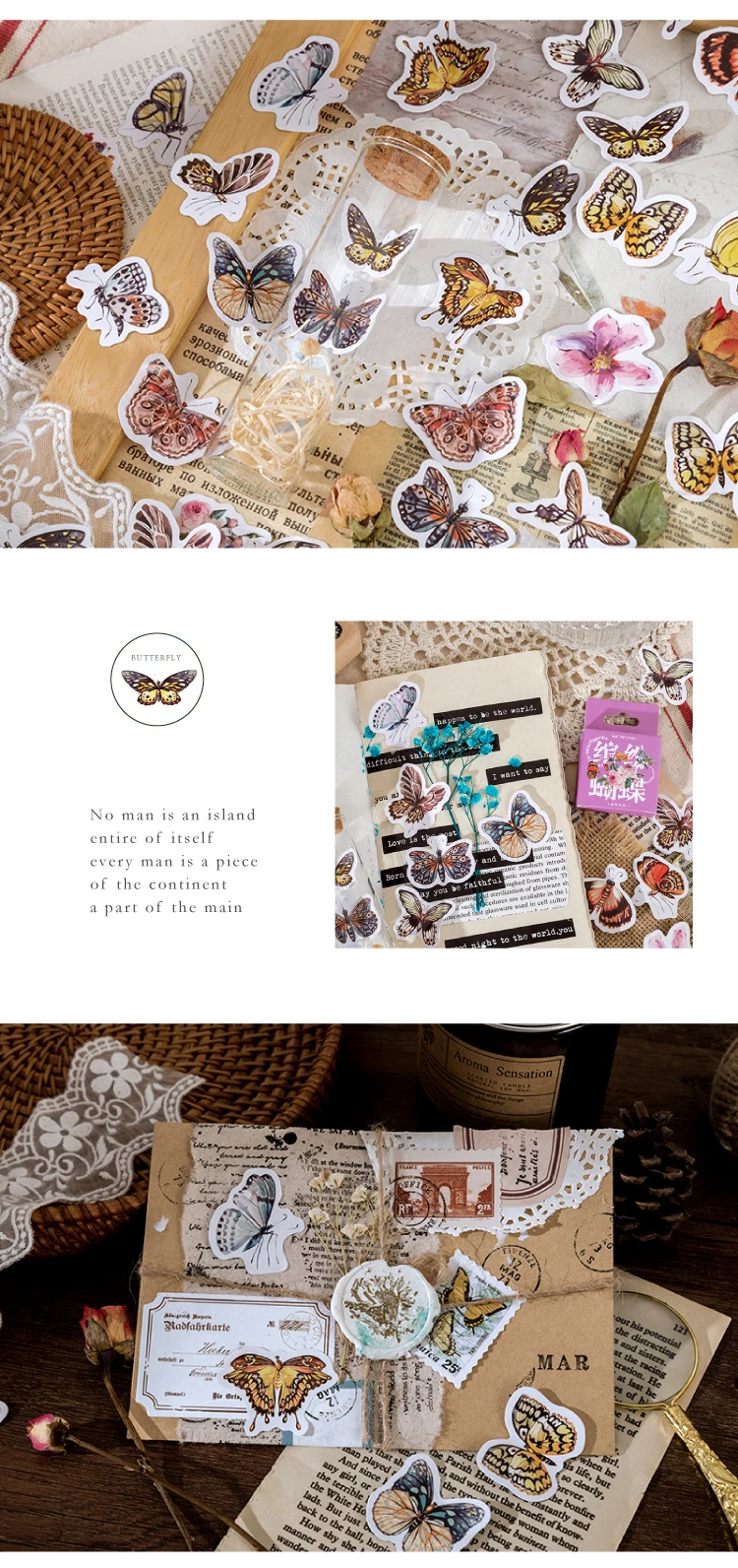 46 шт.кор. винтажные декоративные наклейки с рисунком бабочки, скра...