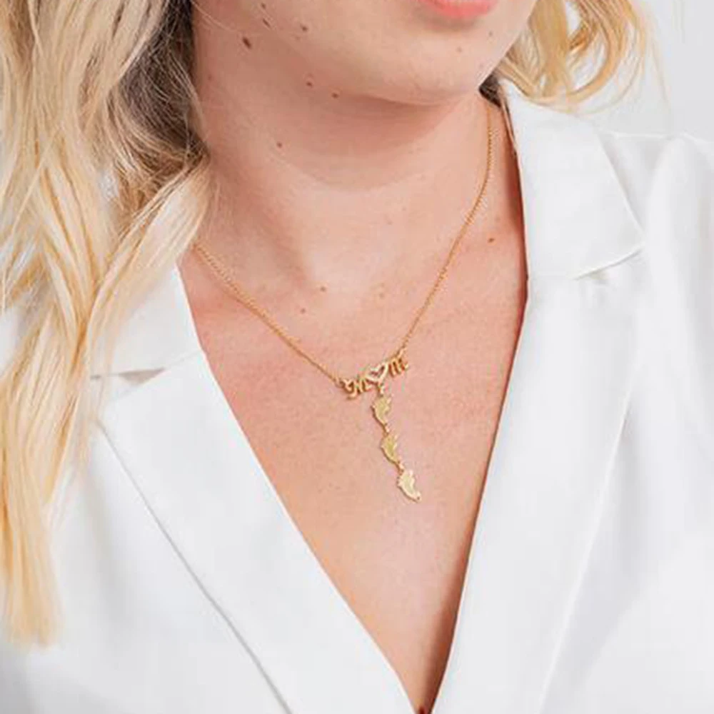 HUHUI пользовательское имя Мамы с подвеской в форме сердца с след кулон с гравировкой табличка из нержавеющей стали с возможностью напечатать ювелирные изделия подарок маме на день рождения