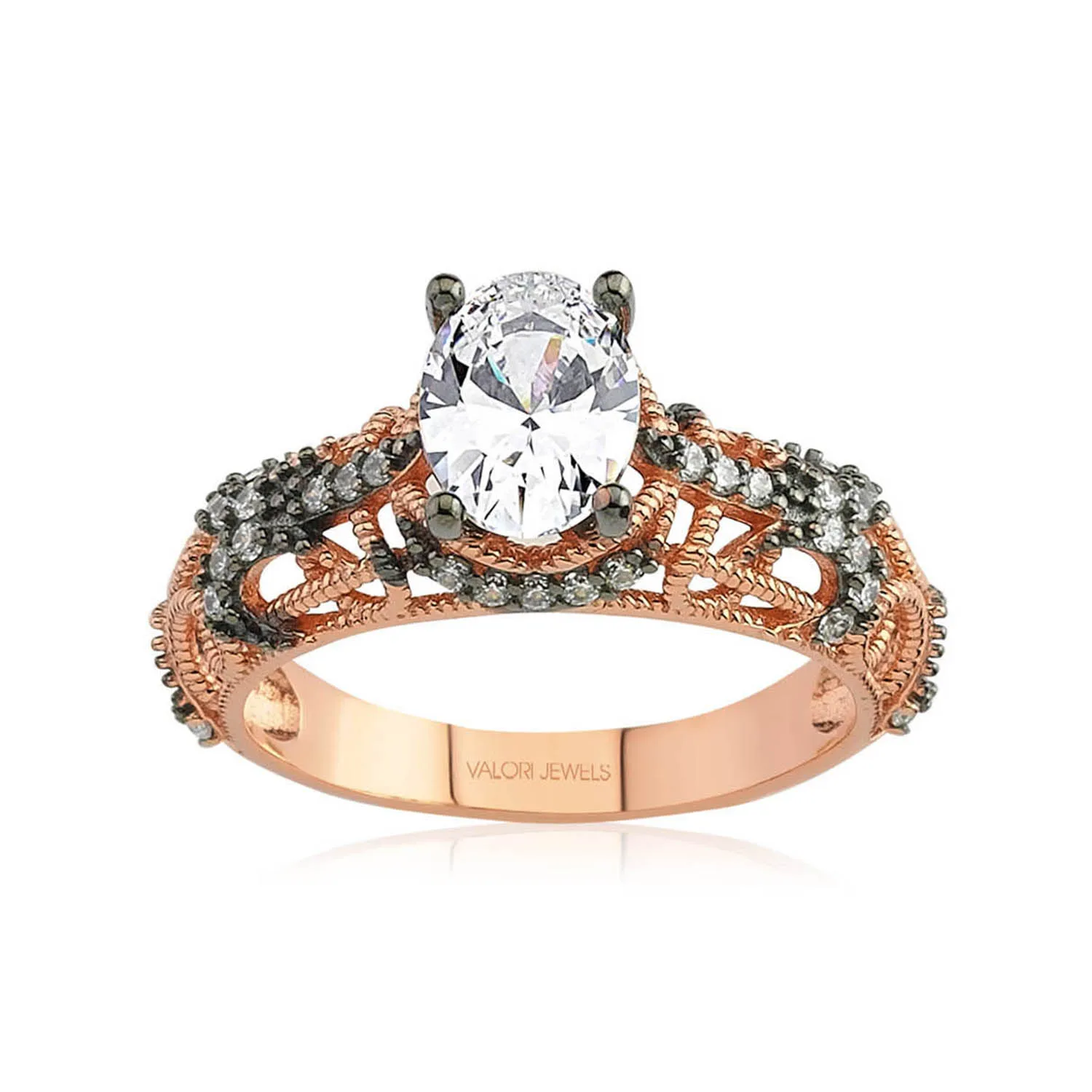 Кольцо с цирконием, покрытое розовым золотом, с белым овальным драгоценным камнем, 1 карат
