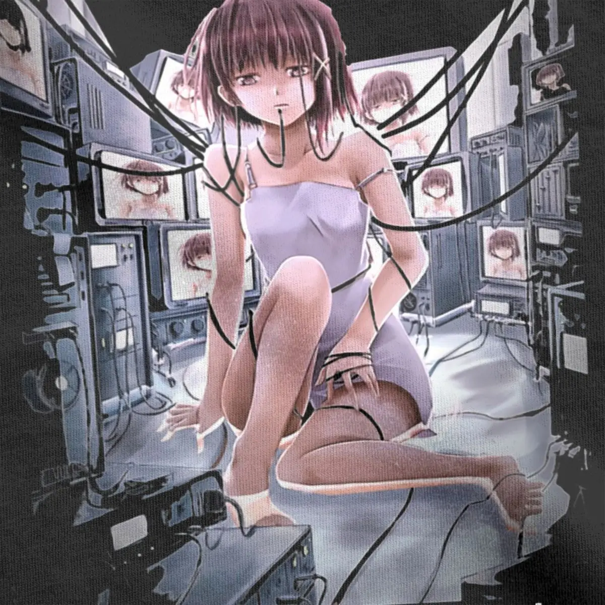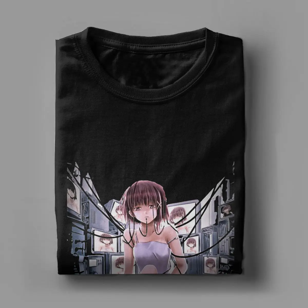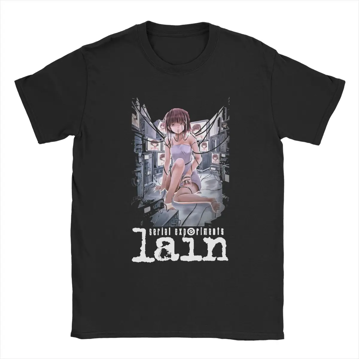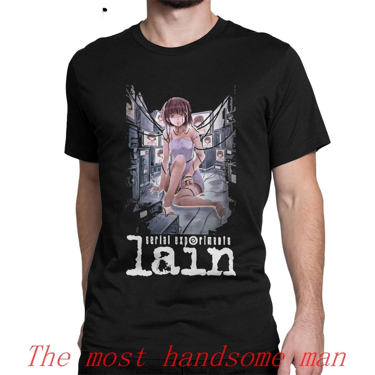 Lain Iwakura последовательный эксперименты лежал футболка мужские Прикольные натуральный хлопок футболка с круглым вырезом, футболка с короткими рукавами размера плюс, одежда