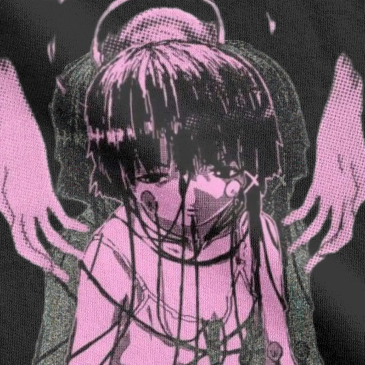 Удивительный виртуальной девушки последовательный эксперименты лежал Мужская футболка с круглым вырезом 100% хлопковая футболка с коротким рукавом футболки для девочек размера плюс, одежда
