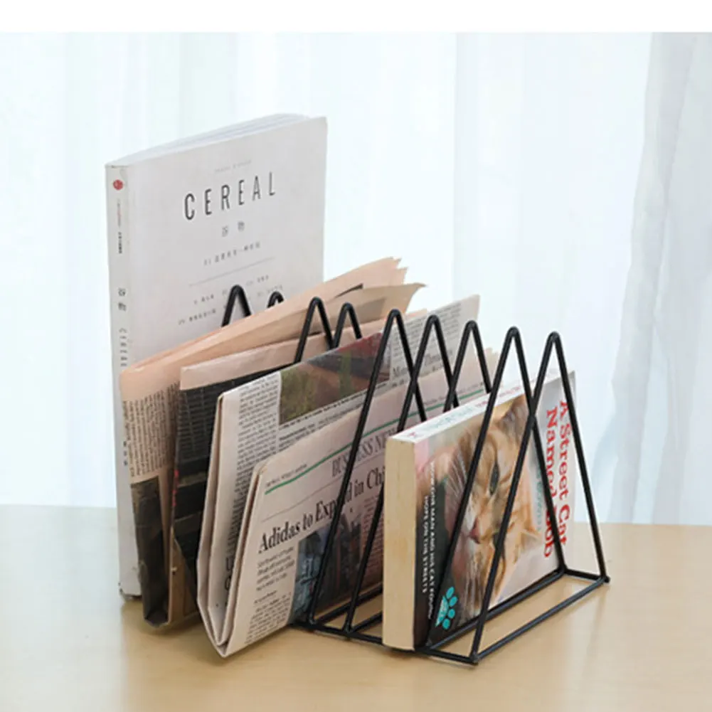 Треугольная Подставка для книг, настольная полка для хранения файлов, металлическая подставка для офисного стола, декоративный органайзер для хранения магазинов и книг