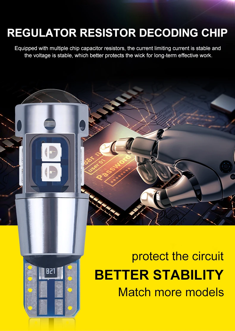 Супер яркие светодиодные лампы T10 W5W, 2 шт., Canbus, без ошибок, 3030, 10SMD, автоматические клиновидные фонари, поворот на боковые лампочки, внутренняя лампа для чтения, белый, 6000K