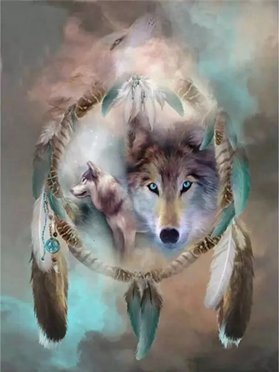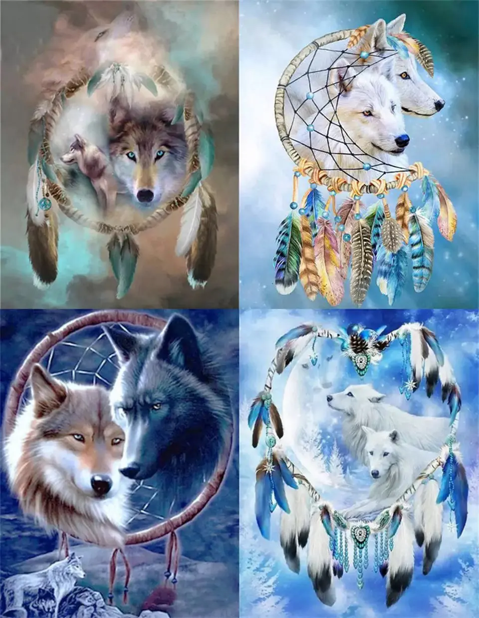 Алмазная вышивка с изображением волка, квадратные круглые стразы