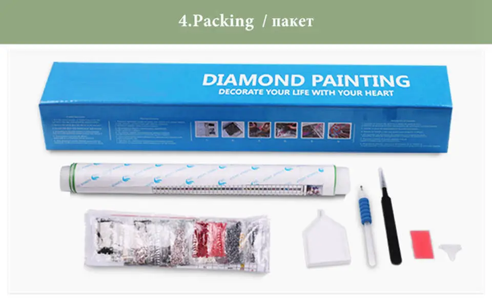 1. Холст для рисования, стразы и все инструменты будут упакованы в коробку.