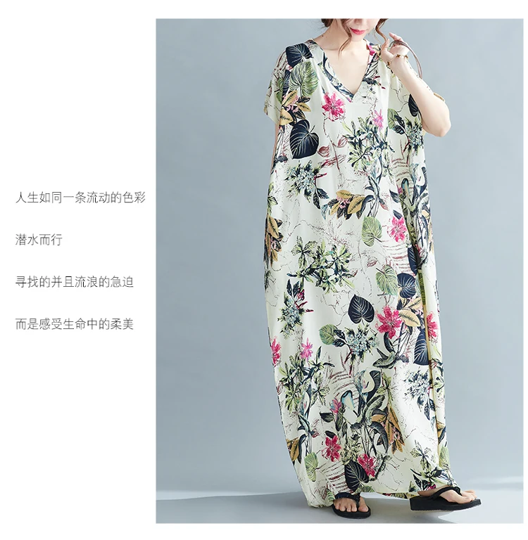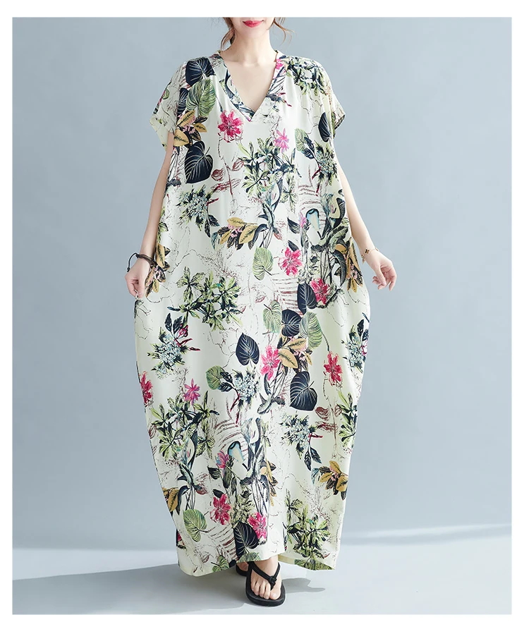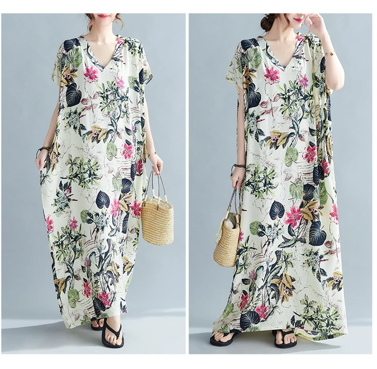 Женское атласное платье с цветочным принтом, свободное Повседневное платье большого размера из тонкого мягкого хлопка с V-образным вырезом, для отдыха и путешествий, лето 2021