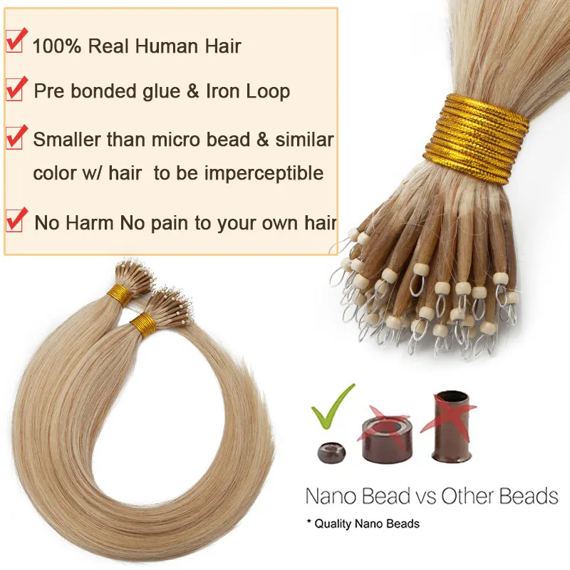 Нано-кольцо SEGO для наращивания волос, 50 прядей, 16-24 дюйма