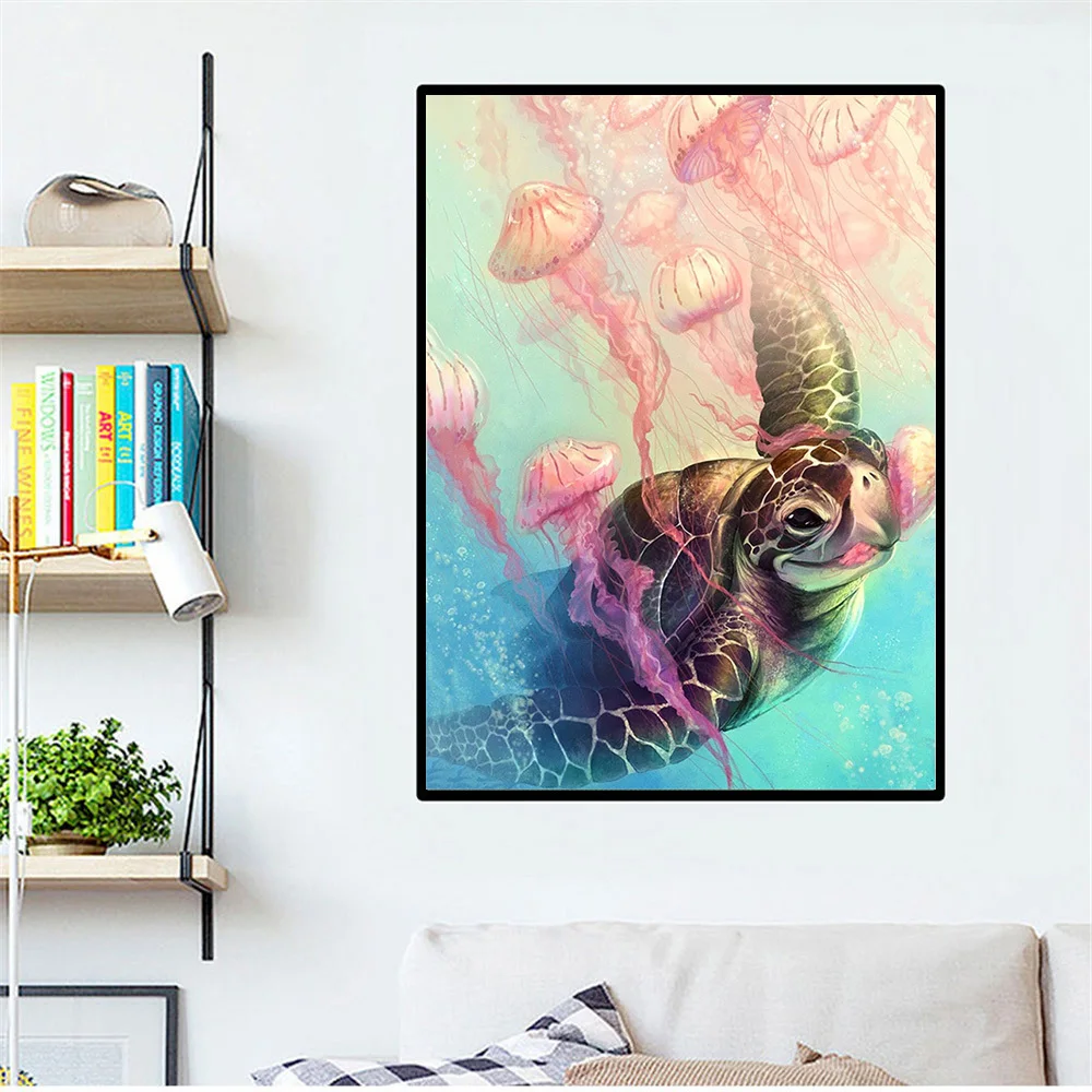 Алмазная 5d картина HUACAN с черепахой, мозаика сделай сам с Медузой, полноразмерная вышивка, набор для домашнего декора с животными