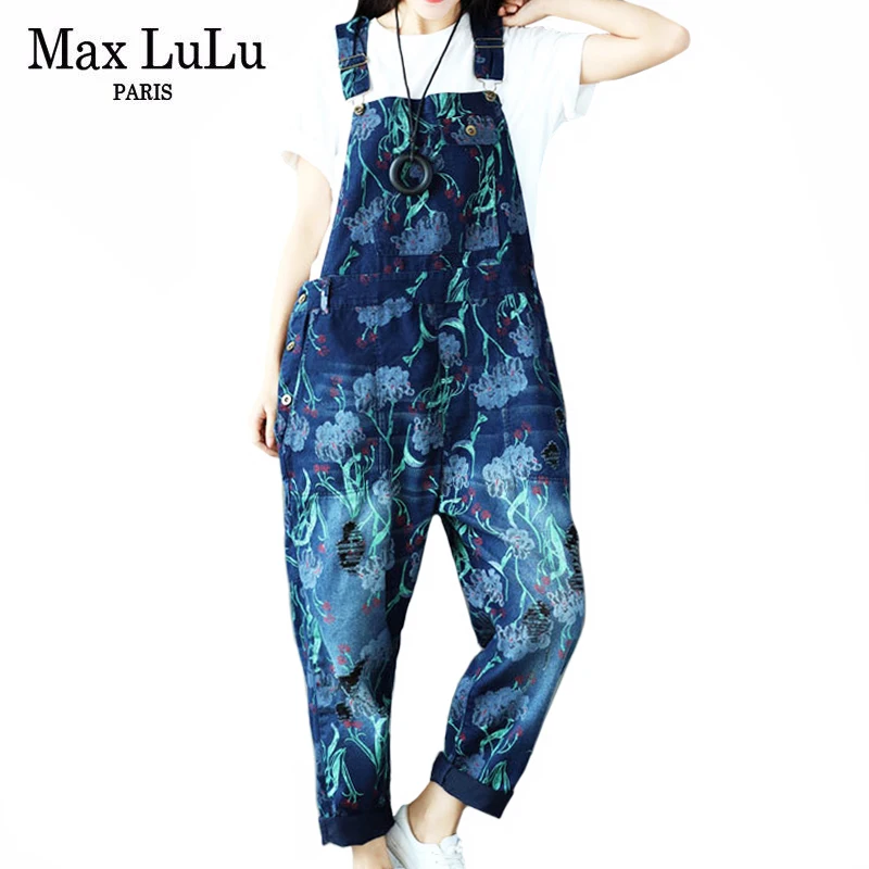 Max LuLu в Корейском стиле 2021 летние модные женские туфли синего цвета с принтом джинсовые штаны повседневные винтажные женские комбинезоны для девочек пуговицы джинсы размера плюс