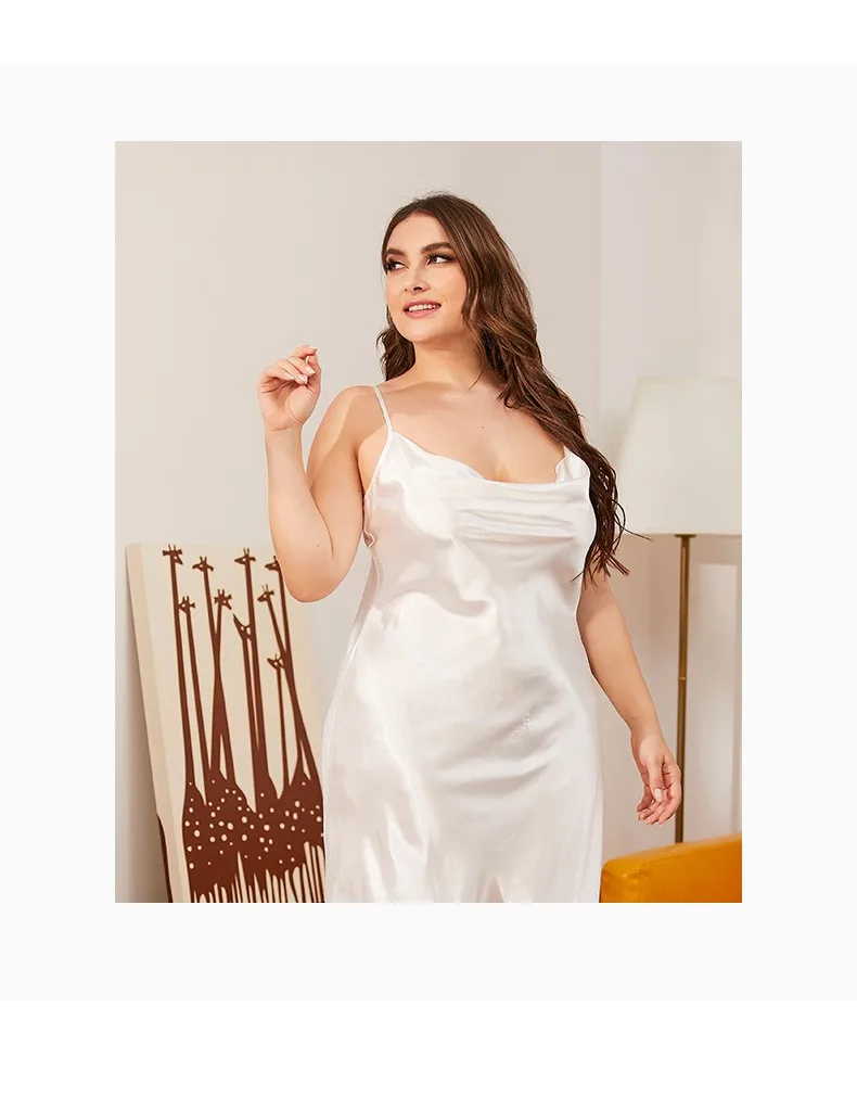 Ночная рубашка женская, атласная, однотонная, размера плюс размера