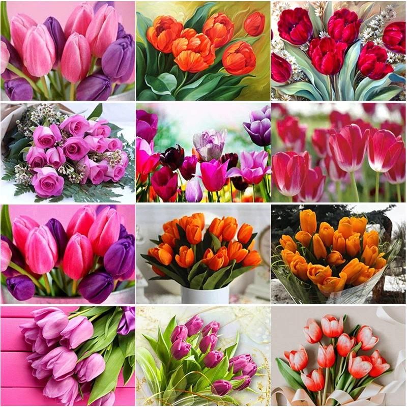 Алмазная 5D картина сделай сам, вышивка с цветком тюльпана, вышивка крестиком, полная выкладка, прямоугольная, круглая, ручная работа, подарок для домашнего декора