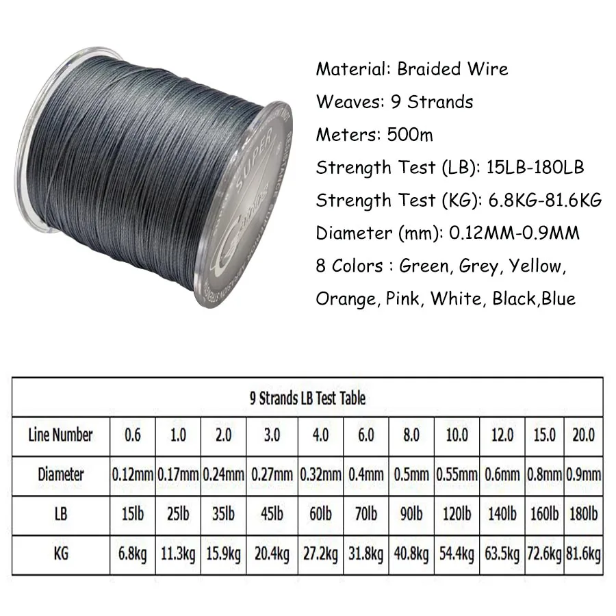 Hilo de pescar trenzado, multifilamento Multicolor de 9 hebras, 500M, para pesca de carpa, 15-180lb sedal pesca