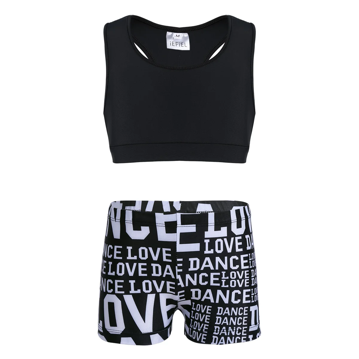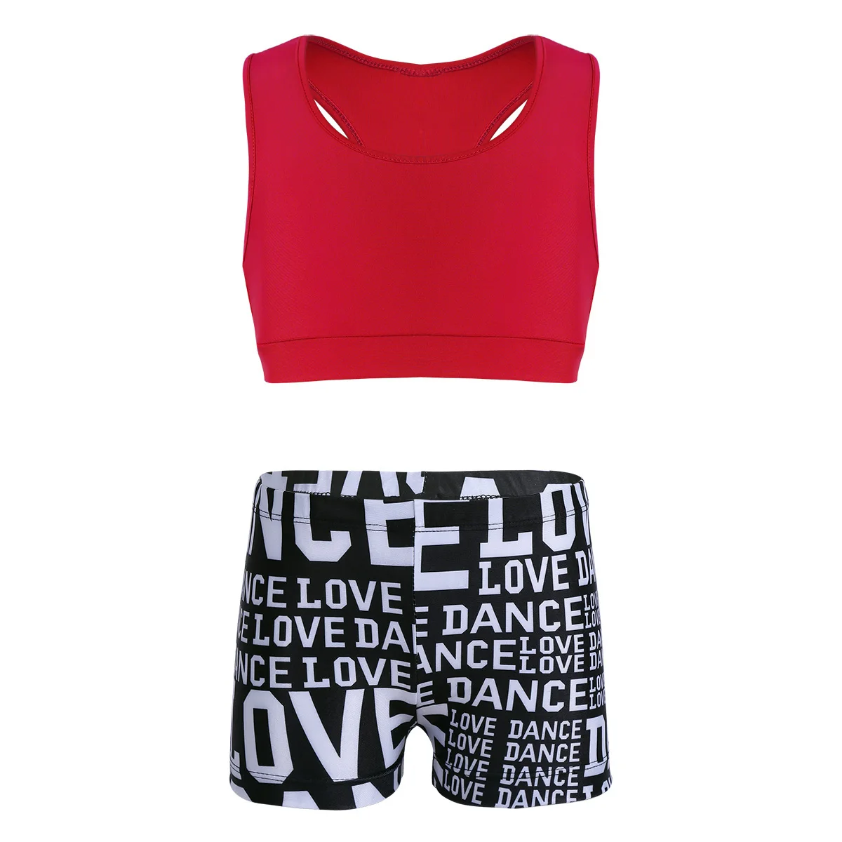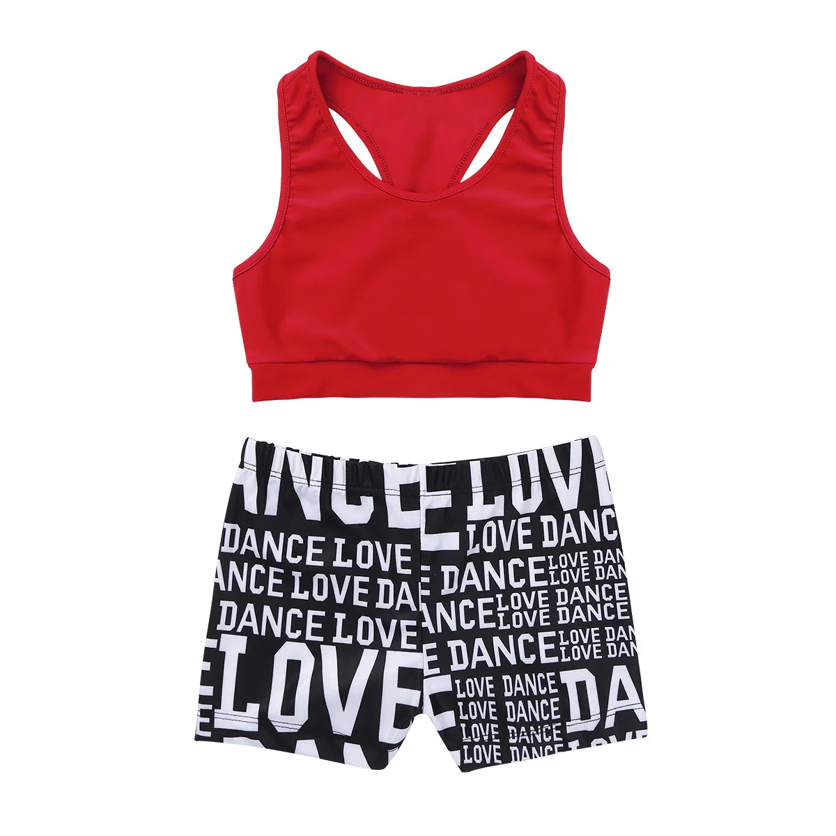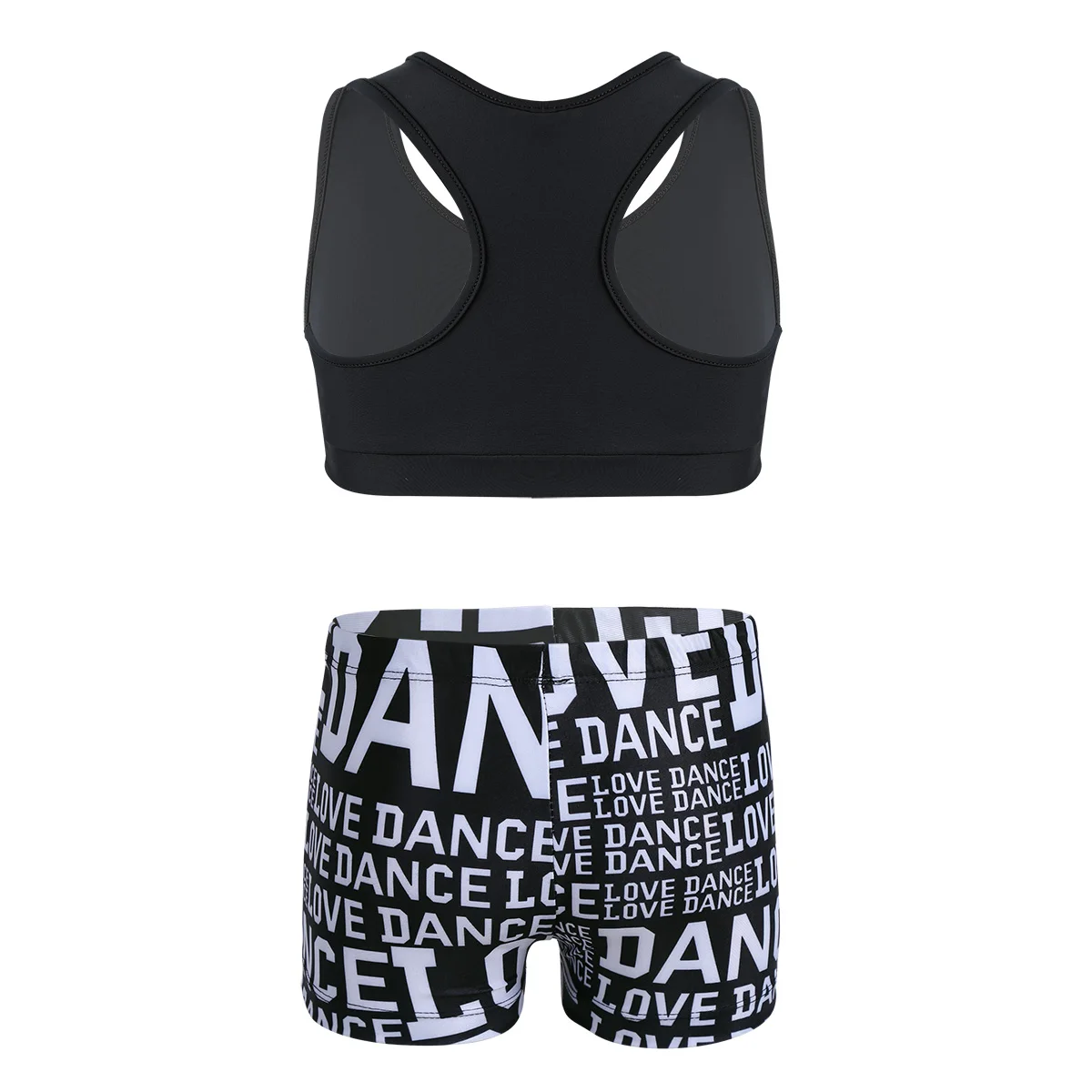Особенности:Одежда изготовлена из полиамида и спандекса, ручная стирка.Таблица размеров означает возрастные диапазоны для девочек, но они предназначены только для общего ознакомления.Майка-борцовка сзади, однотонная. Эластичная ткань, удобная и дышащая.Подходящие низ с буквенным принтом и эластичным поясом. Спортивный комплект для вашей девочки.Подходит для занятий танцами, гимнастическое упражнение, выступлений на сцене и т. д.