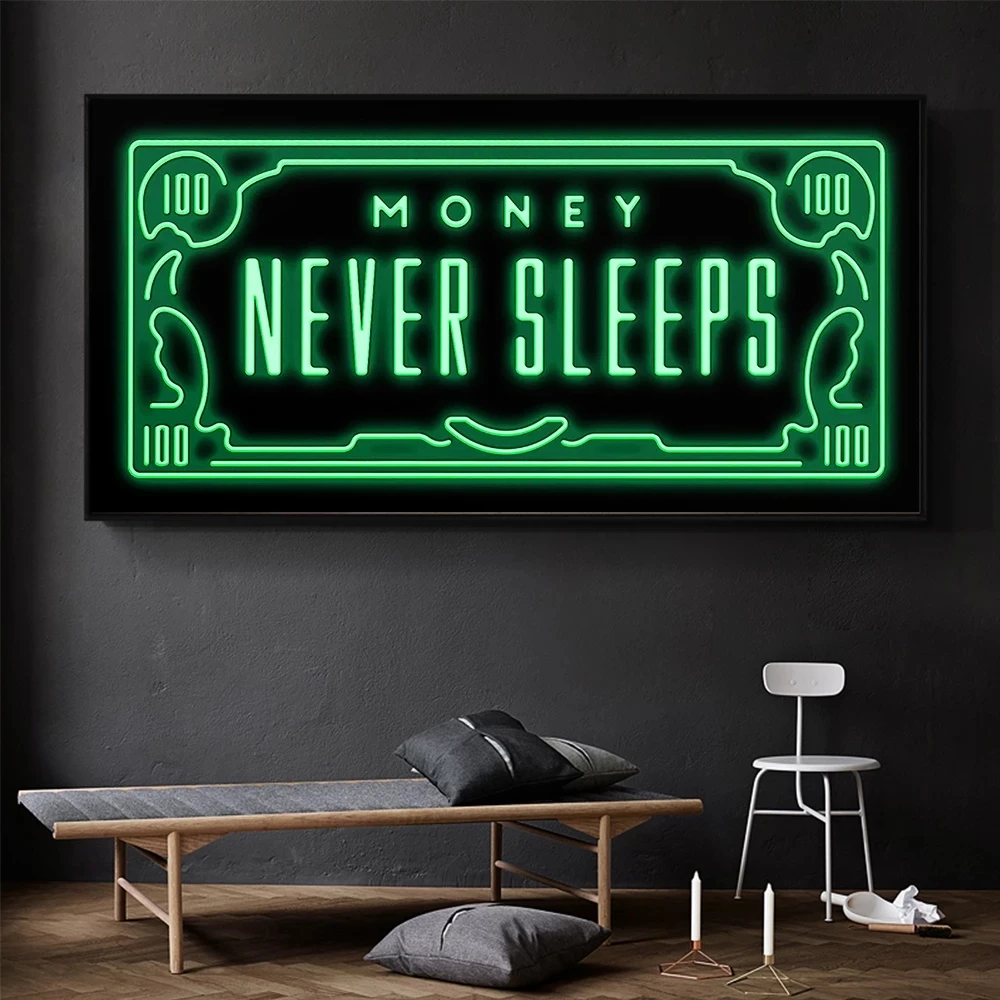 Домашний декор, холст, искусство в уличном стиле, картины для домашнего декора, вдохновляющее настенное искусство, никогда не спит, зеленые флэш-деньги icon star icon star icon star icon star icon star