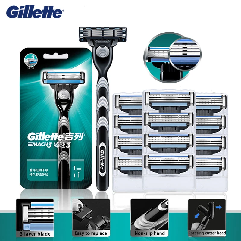 Мужская бритва Gillette Mach 3, бритвенный станок для мужчин, безопасная бритва для лица, прямая бритва с новой заменой мужских t-образных лезвий