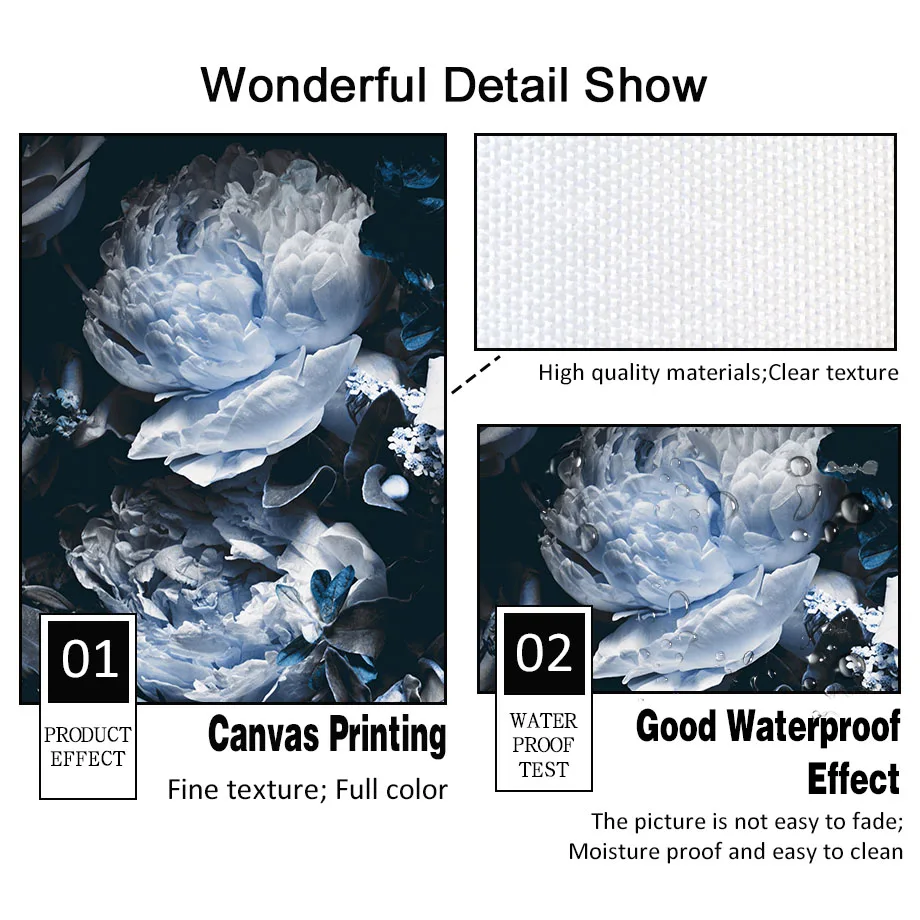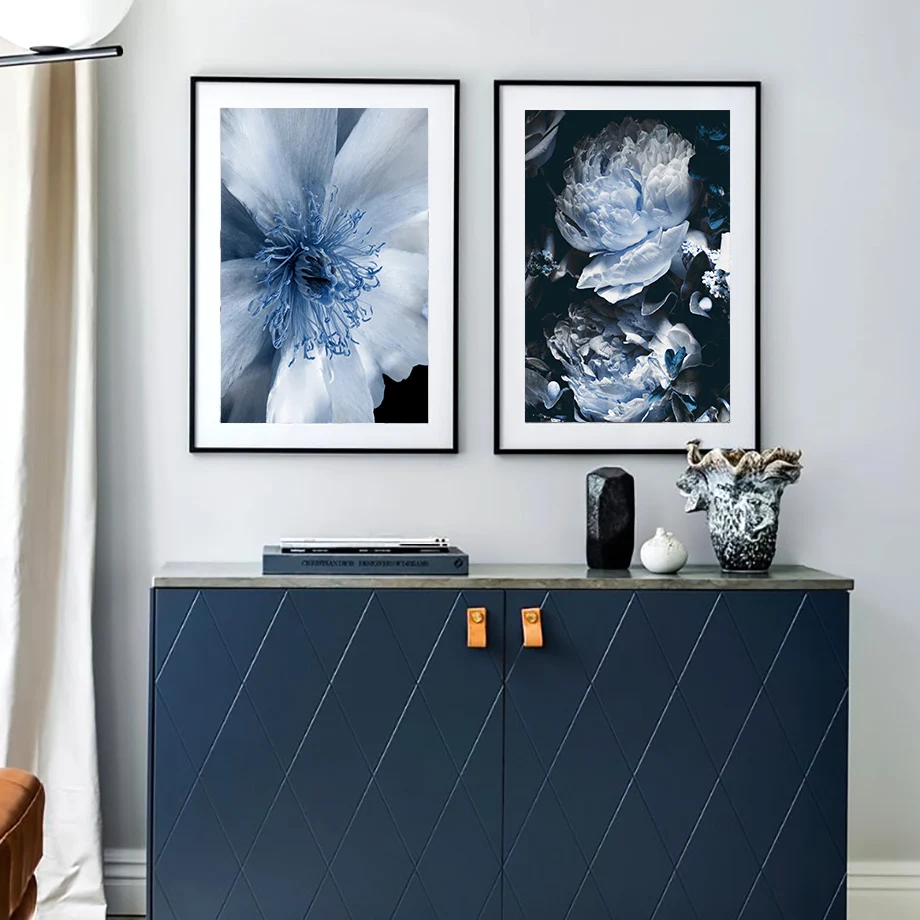 Плакат с синими цветами, настенная Картина на холсте с изображением листа папоротника, розы, скандинавских цветов, для интерьера дома, лофта, гостиной