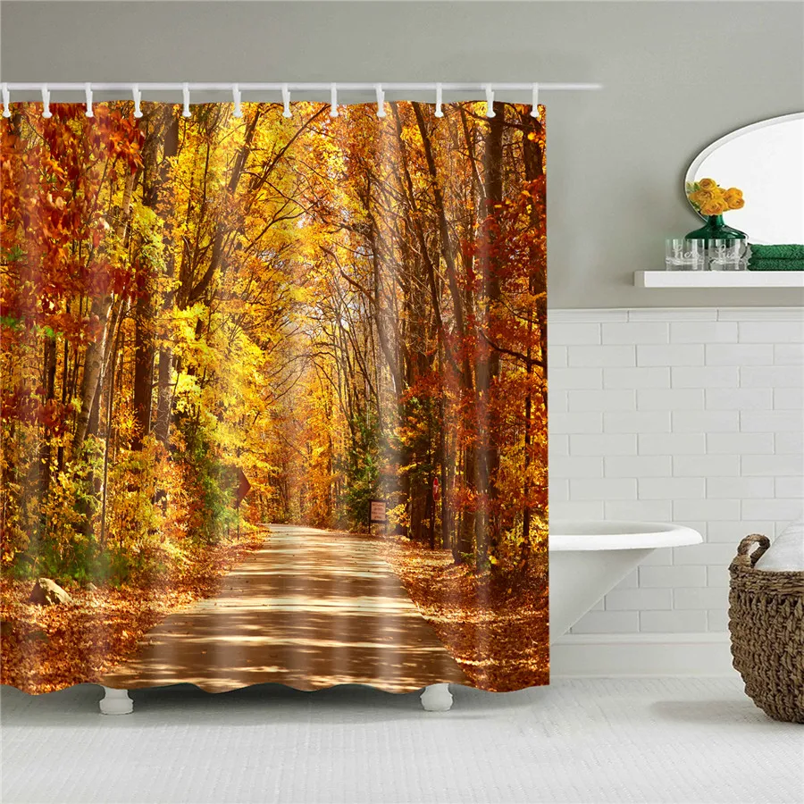 Новая живописная лесная занавеска для душа с красочными растениями и деревьями, занавеска для ванной, фрикционная Водонепроницаемая занавеска для ванной из полиэстера с 10 крючками